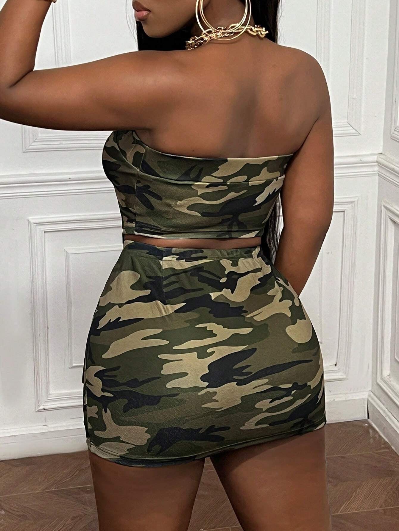 Upgrade your street style with this fashionable and functional Camo Set. The top and skirt feature a trendy camo print and are designed with large pockets for added convenience. With a high-waist design, this set will accentuate your figure while giving you plenty of storage space on the go.