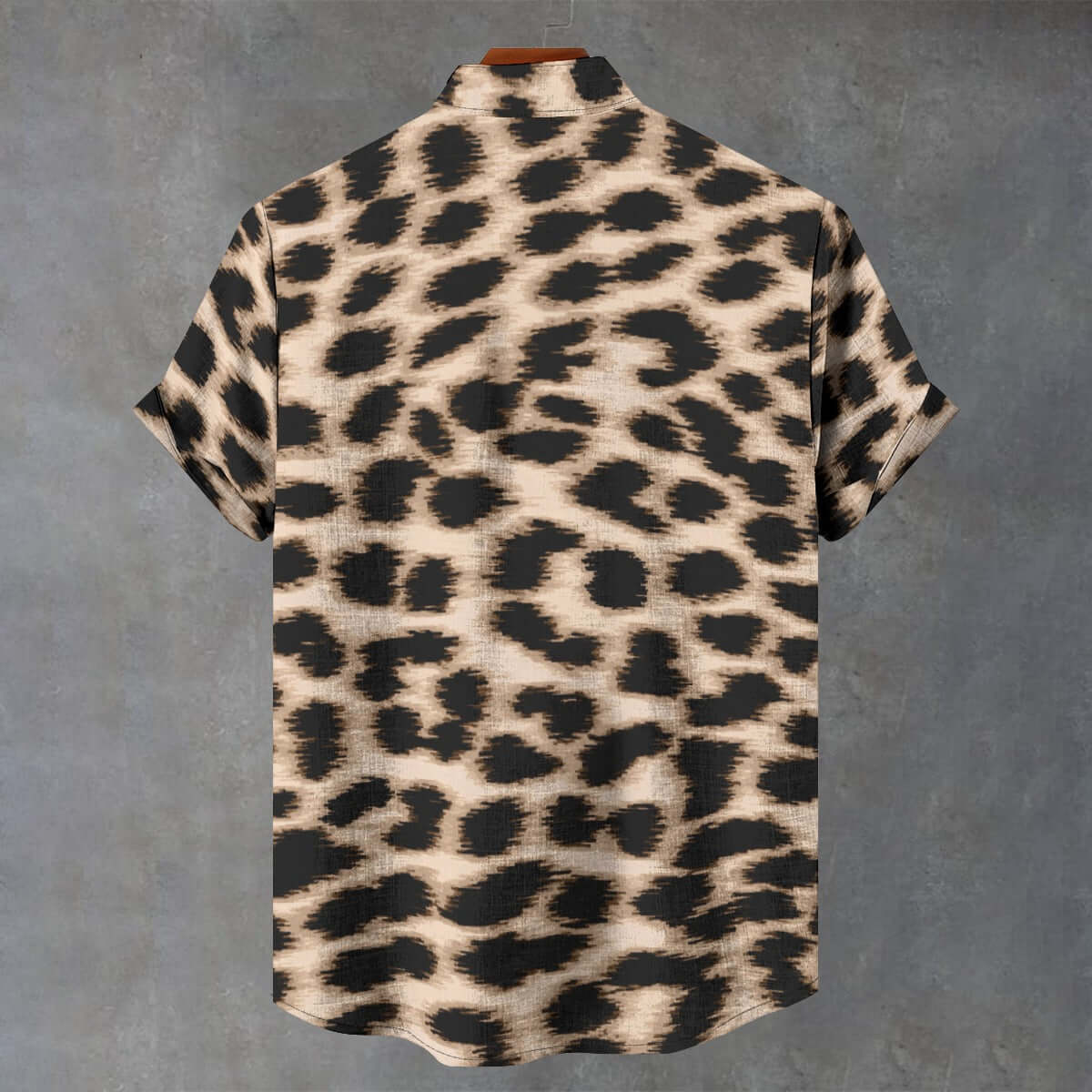 Unleash your wild side with our Stylish Cheetah Print Short Sleeve Shirt For Men. Crafted from high-quality cotton, this shirt offers a luxuriously soft feel against your skin, ensuring unparalleled comfort and reflecting our dedication to environmentally friendly materials. The sophisticated small stand-collar design adds a touch of refinement, while the contemporary curved hem provides a modern edge. Make a statement effortlessly by pairing this stylish cheetah print shirt with your favorite casual bottoms and showcase your unique taste. Get yours now!