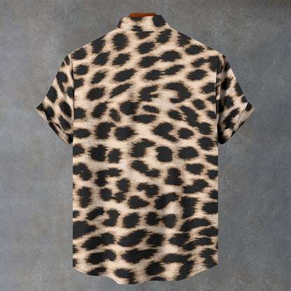 Stylish Cheetah Print Short Sleeve Shirt For Men