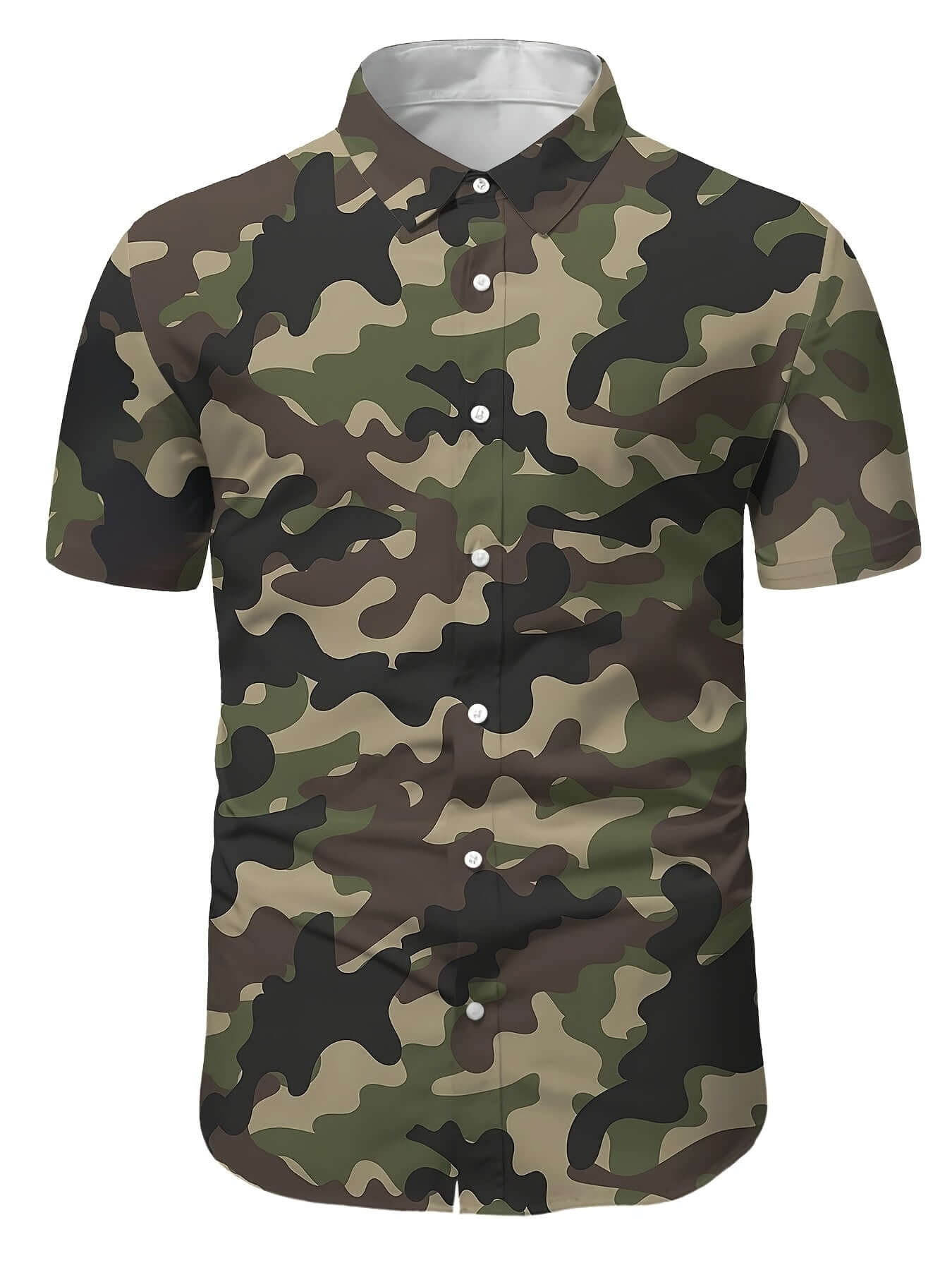 Stay cool and stylish this summer with the men's camouflage short sleeve shirt, blending sporty design with casual versatility. Perfect for outdoor activities, casual outings, or warm-weather adventures, this shirt offers lightweight comfort and a classic fit.