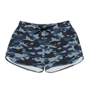 These army blue camouflage print shorts for women are the perfect addition to your summer wardrobe. Made of 100% polyester, the extra light fabric ensures comfort and breathability. The drawstring waist allows for a customizable fit, while the two side pockets add functionality. Ideal for women looking for a casual and stylish option for summer wear.
