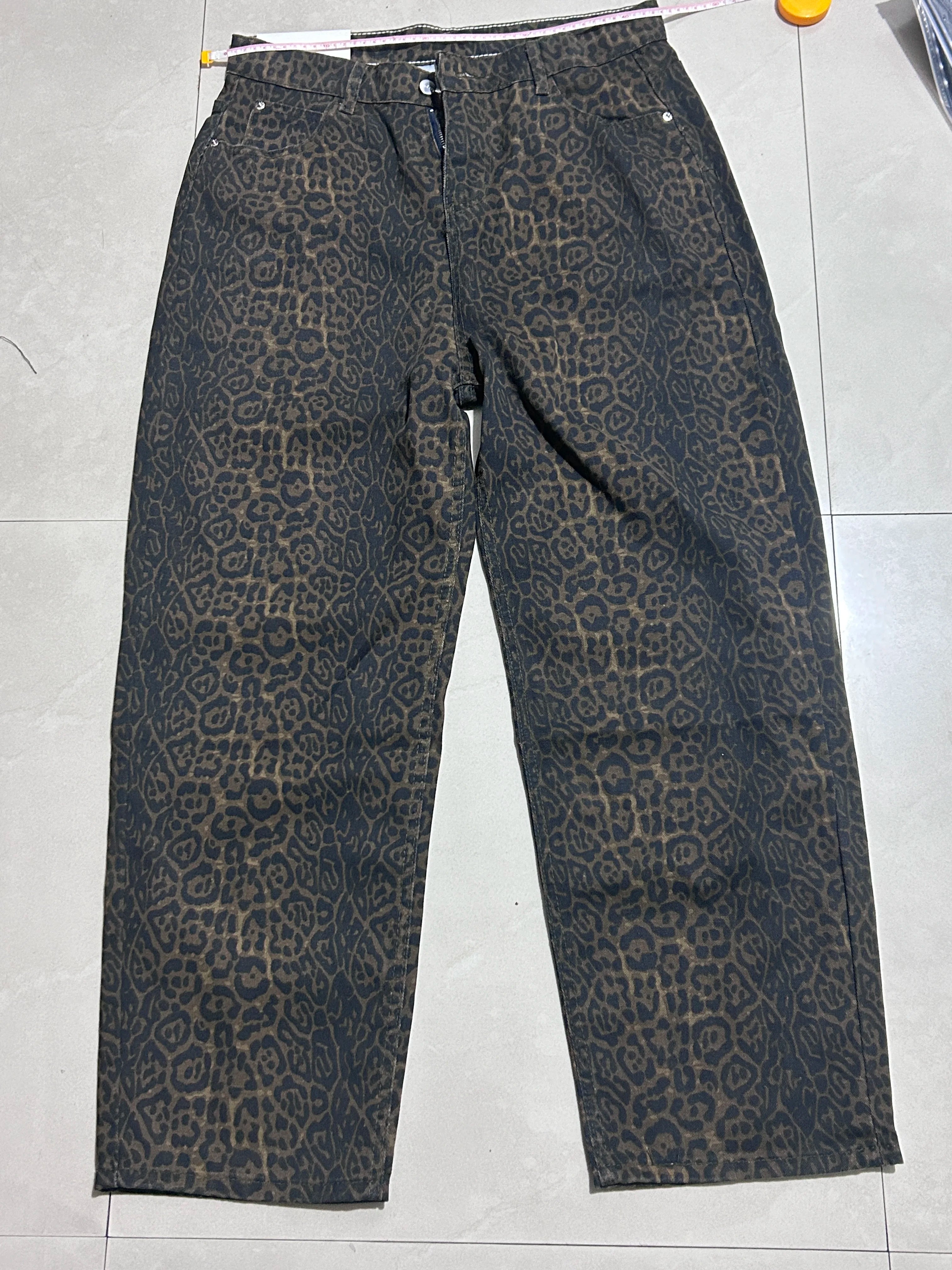 Tan Leopard Print Denim Jeans | Men's Oversized Vintage Streetwear