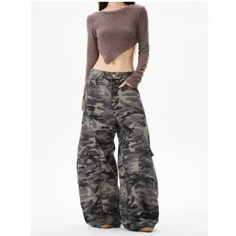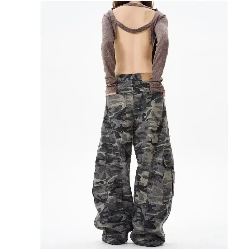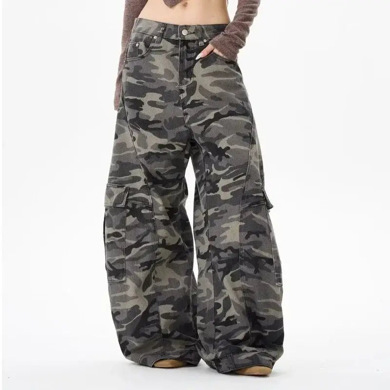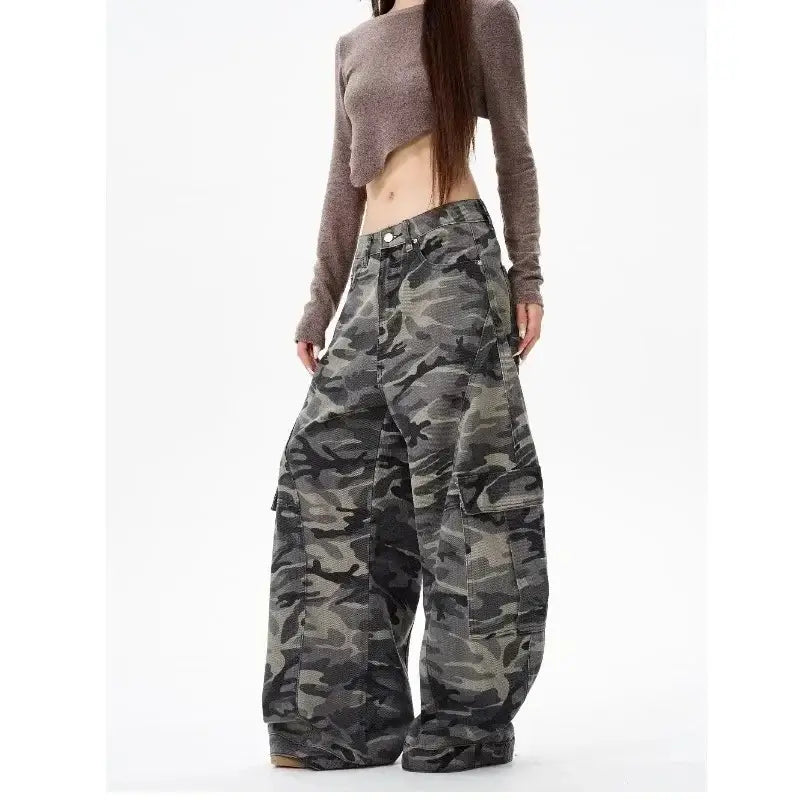 Vintage American Style Multi-Pocket Work Camouflage Pants Loose Fit Trousers Casual Fashionable Wide Leg Pants For Men And Women