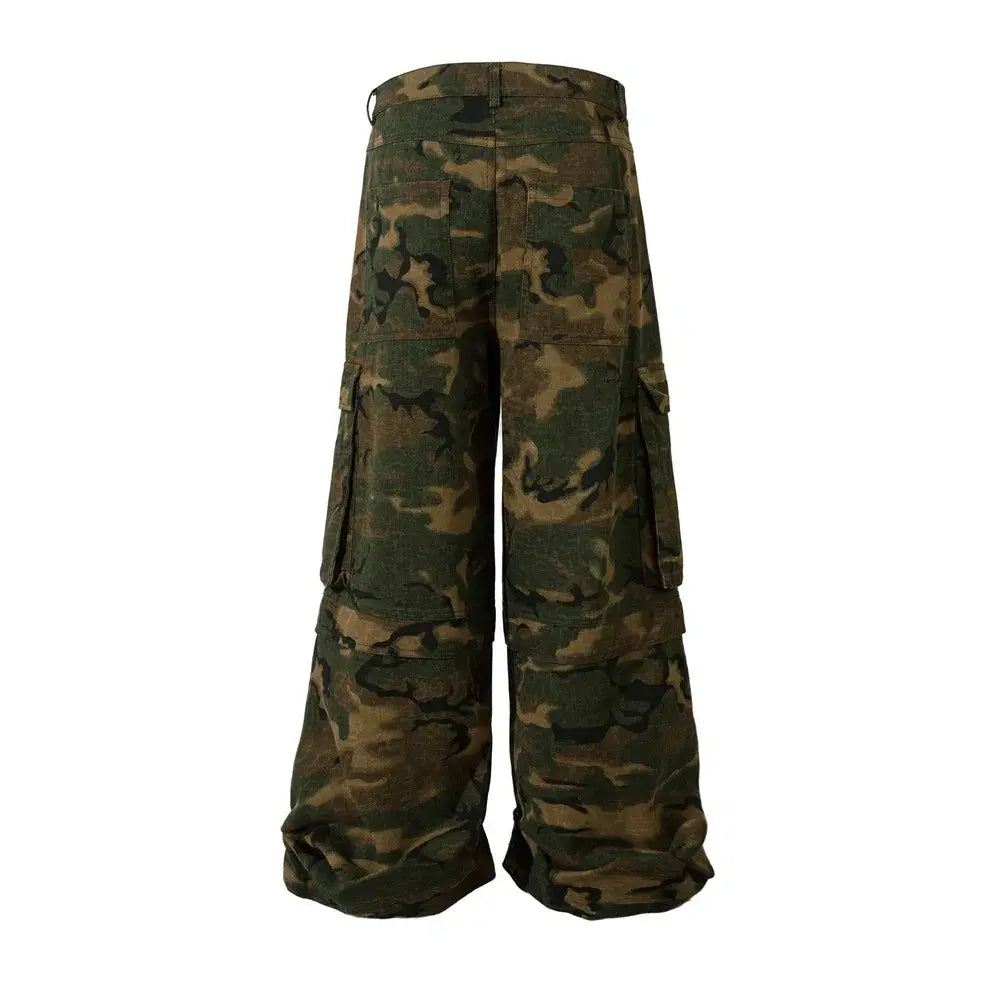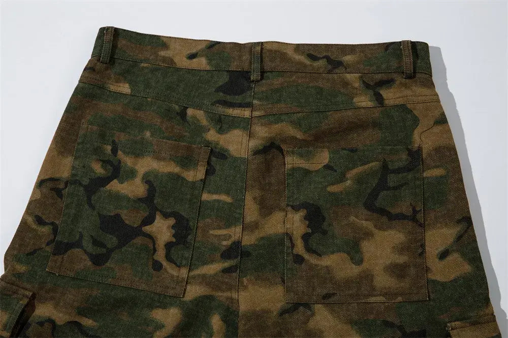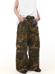 Vintage Camouflage Multi-Pocket Baggy Overalls
