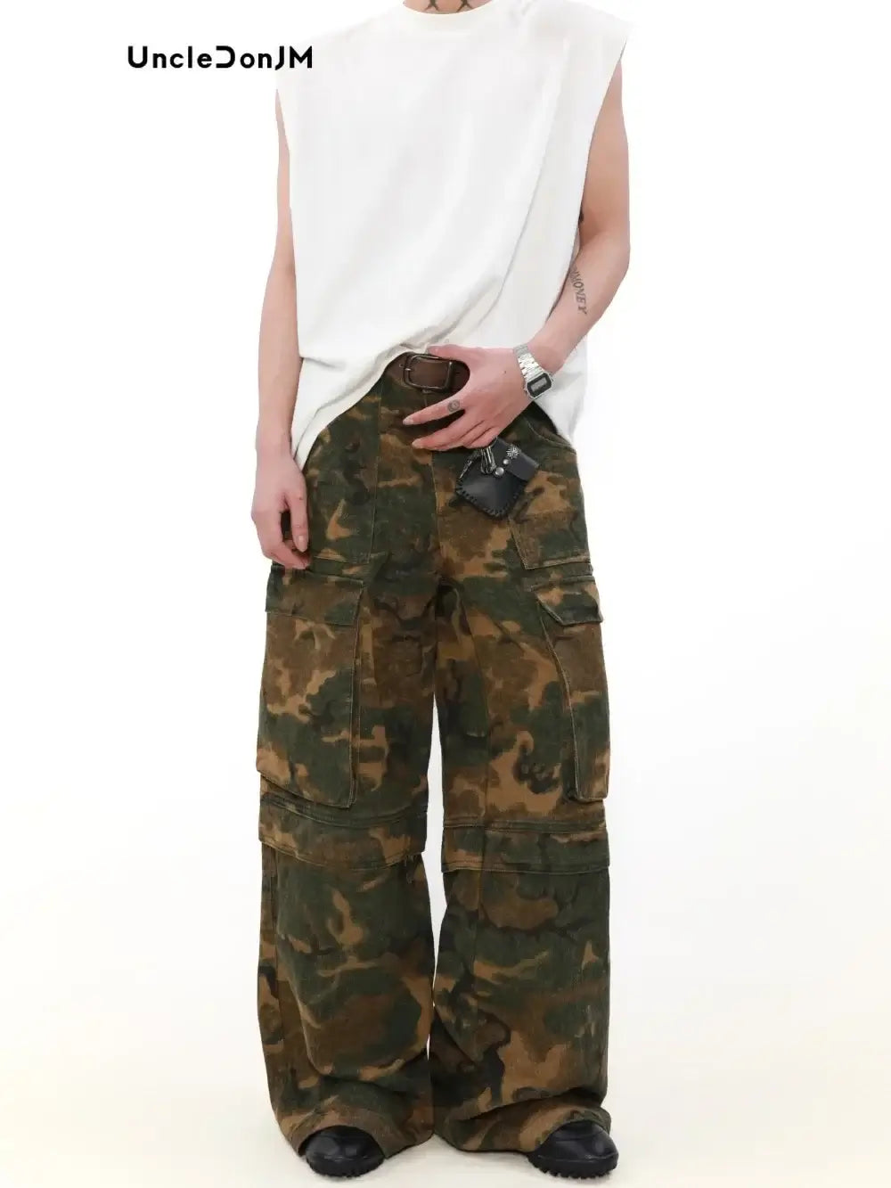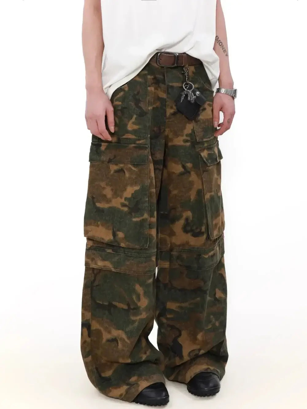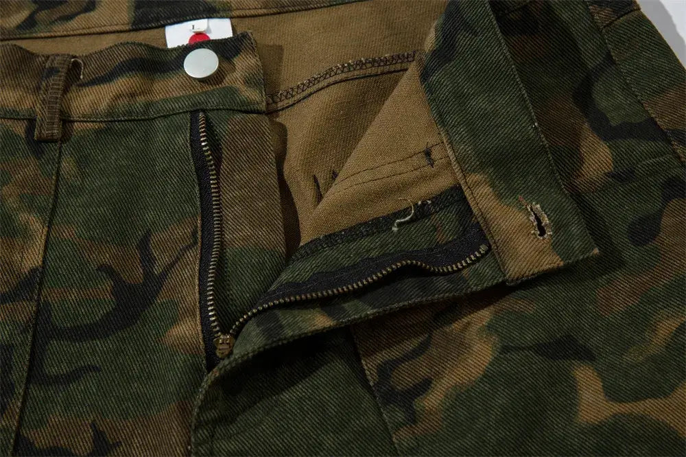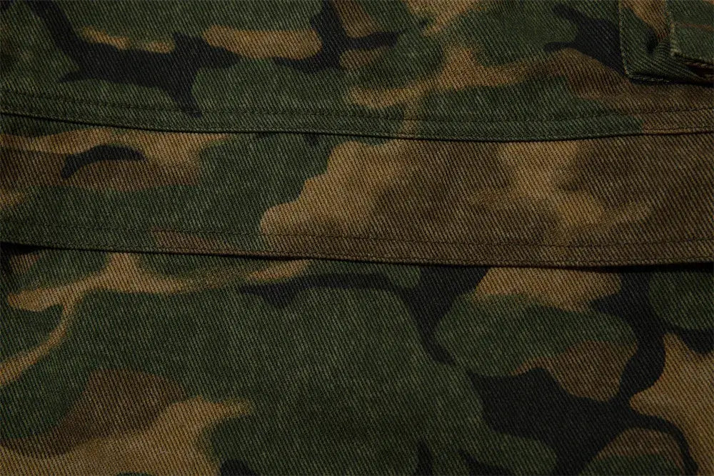 - Design: Distressed camouflage pattern for a vintage military-inspired aesthetic.