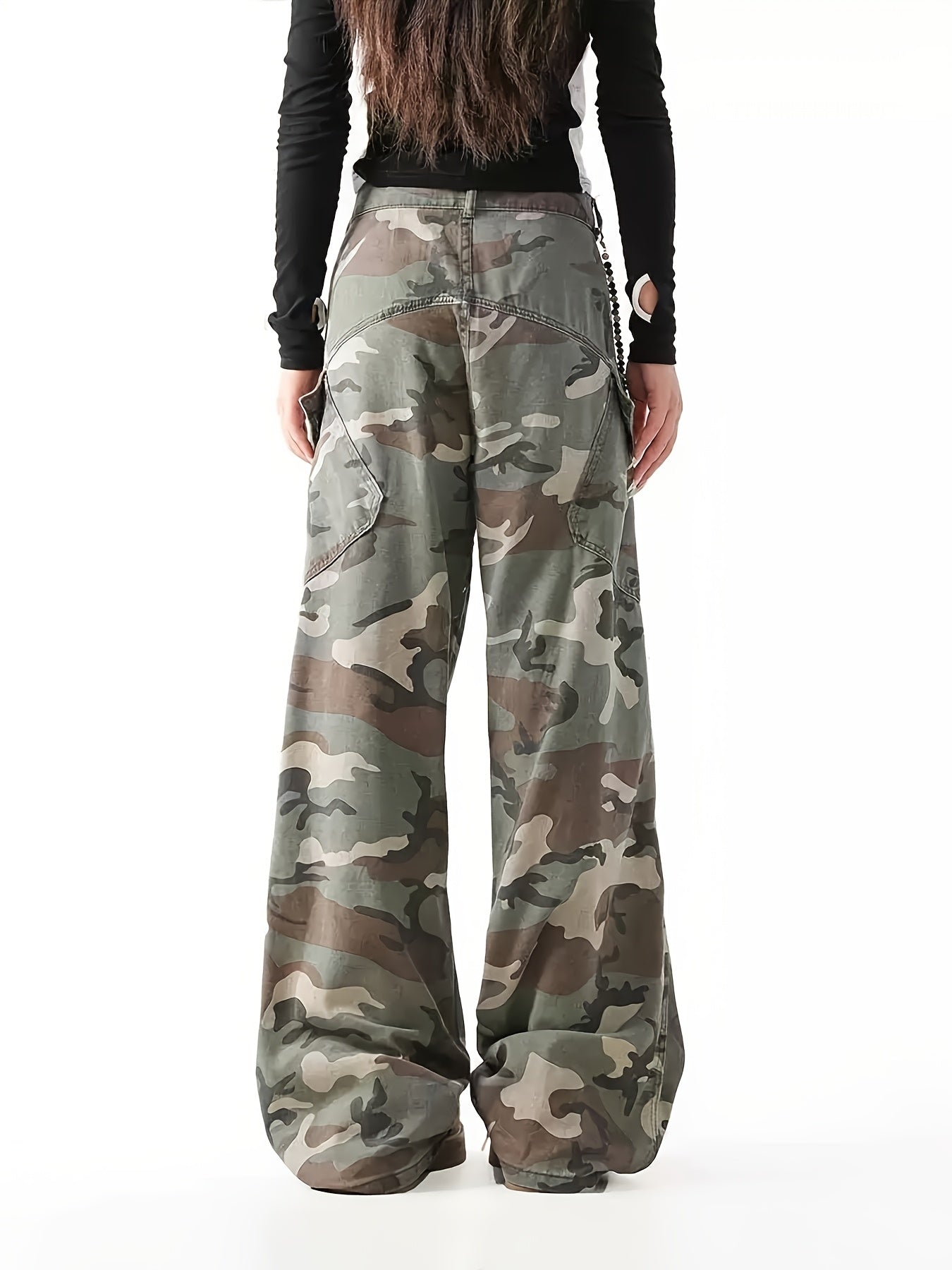 Vintage-Inspired Camo Cargo Jeans for Women | Straight Leg
