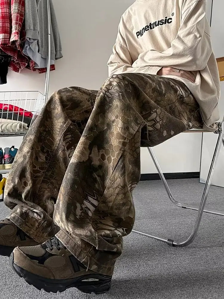 Vintage Snake Print Wide-Leg Jeans – Bold Y2K Streetwear