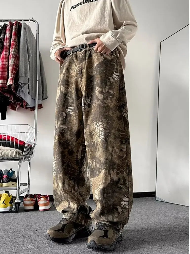 These snake print wide-leg jeans are the perfect mix of vintage Y2K and modern streetwear, making them a standout addition to any wardrobe. Get yours today and make a fearless fashion statement!