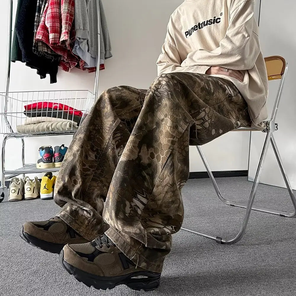 Unleash your wild side with these Vintage Snake Print Wide-Leg Jeans—the ultimate statement piece for streetwear lovers. Designed for those who dare to stand out, these jeans blend Y2K aesthetics with modern hip-hop influences, making them a must-have for trendsetters.