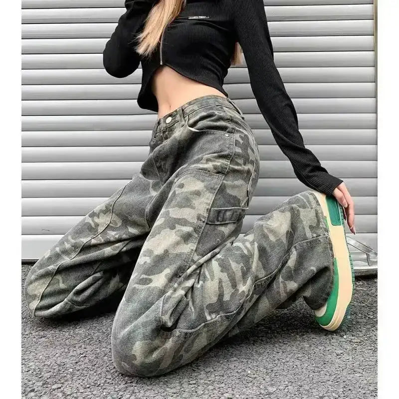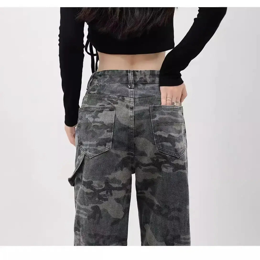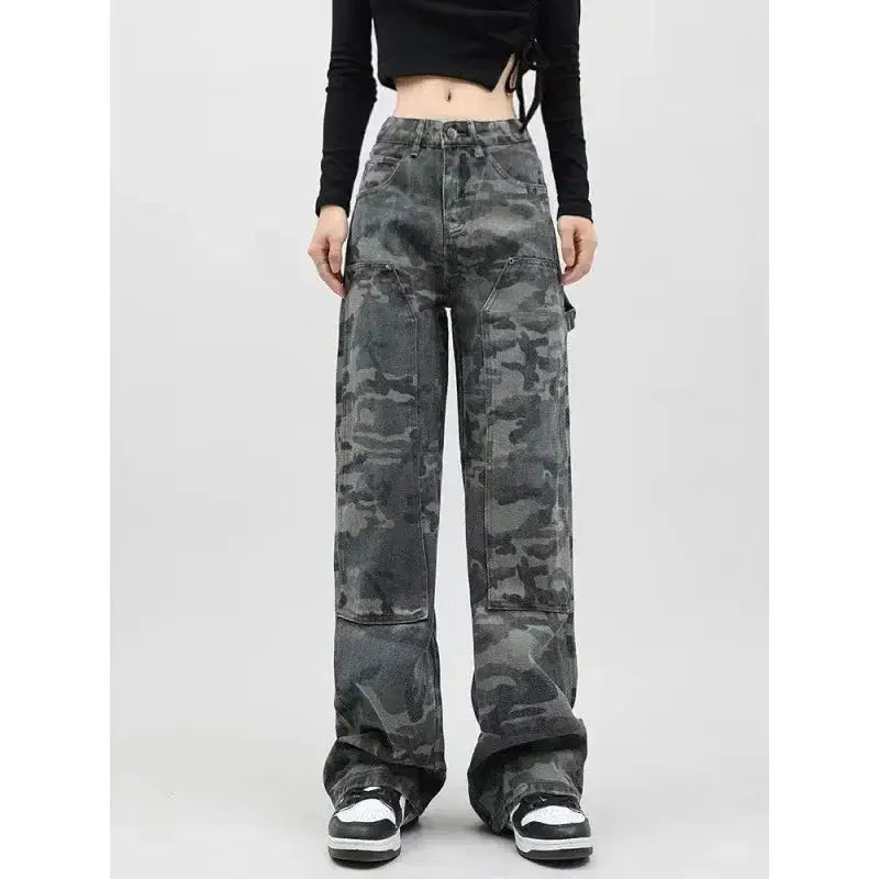 Women’s Camo Cargo Jeans – High Waist, Loose Fit