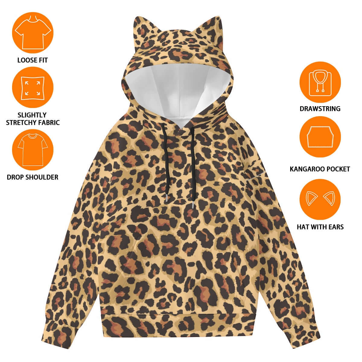 Leopard Hoodie With Cat's Ears | Brown and Black