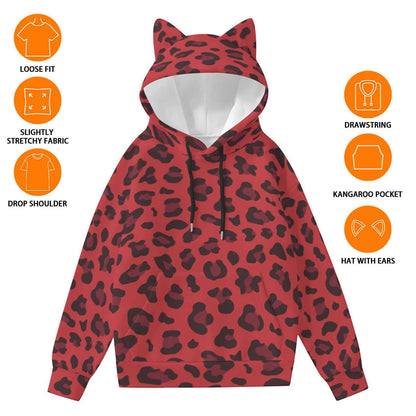 Leopard Hoodie With Cat's Ears | Red and Black