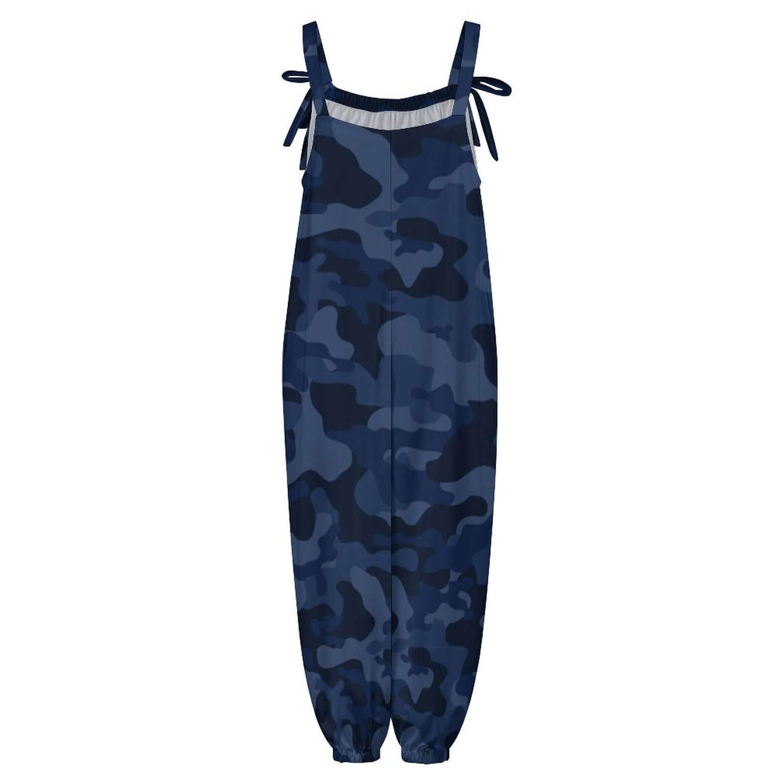 Women's Blue Camo Jumpsuit | Baggy Overalls, Loose-Fit Romper