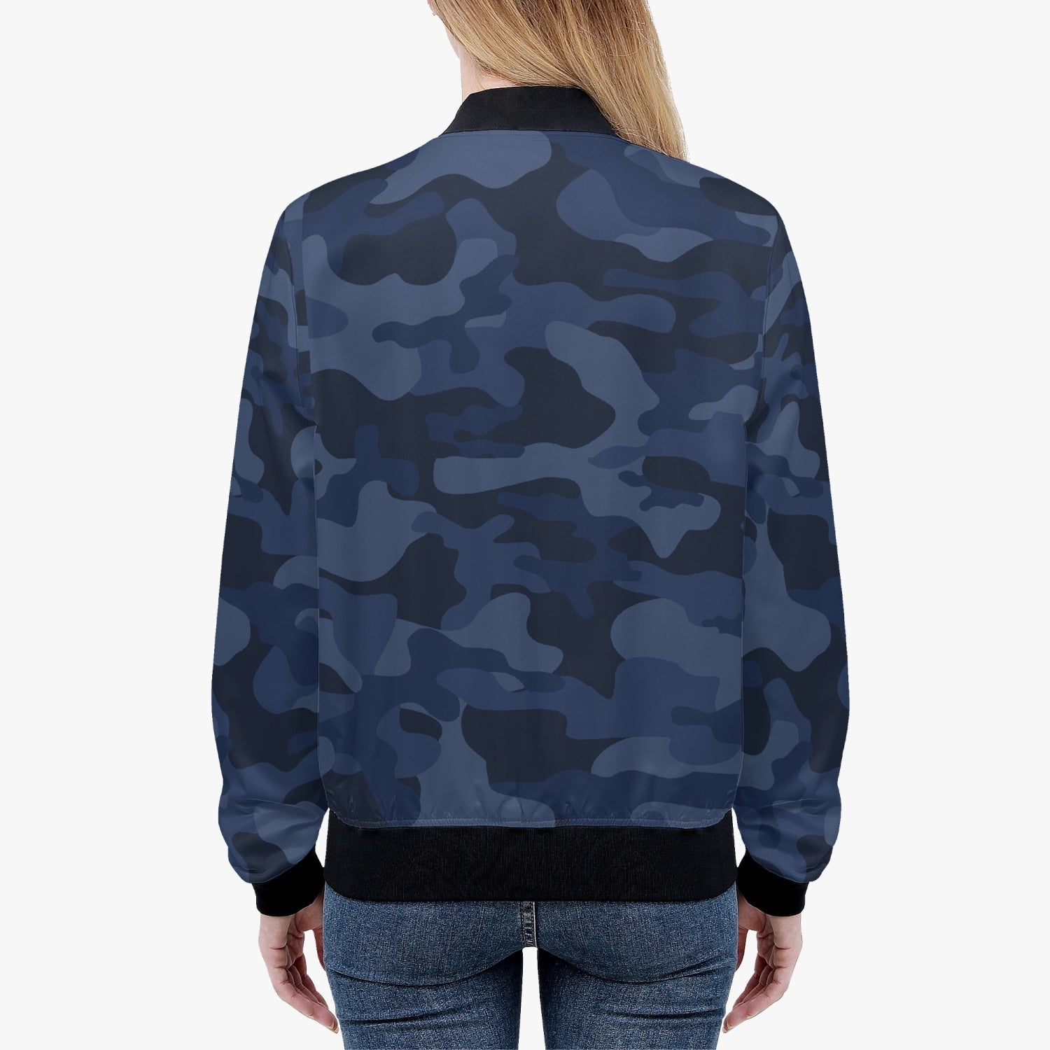Women's Camo Bomber Jacket | Deep Blue Camouflage
