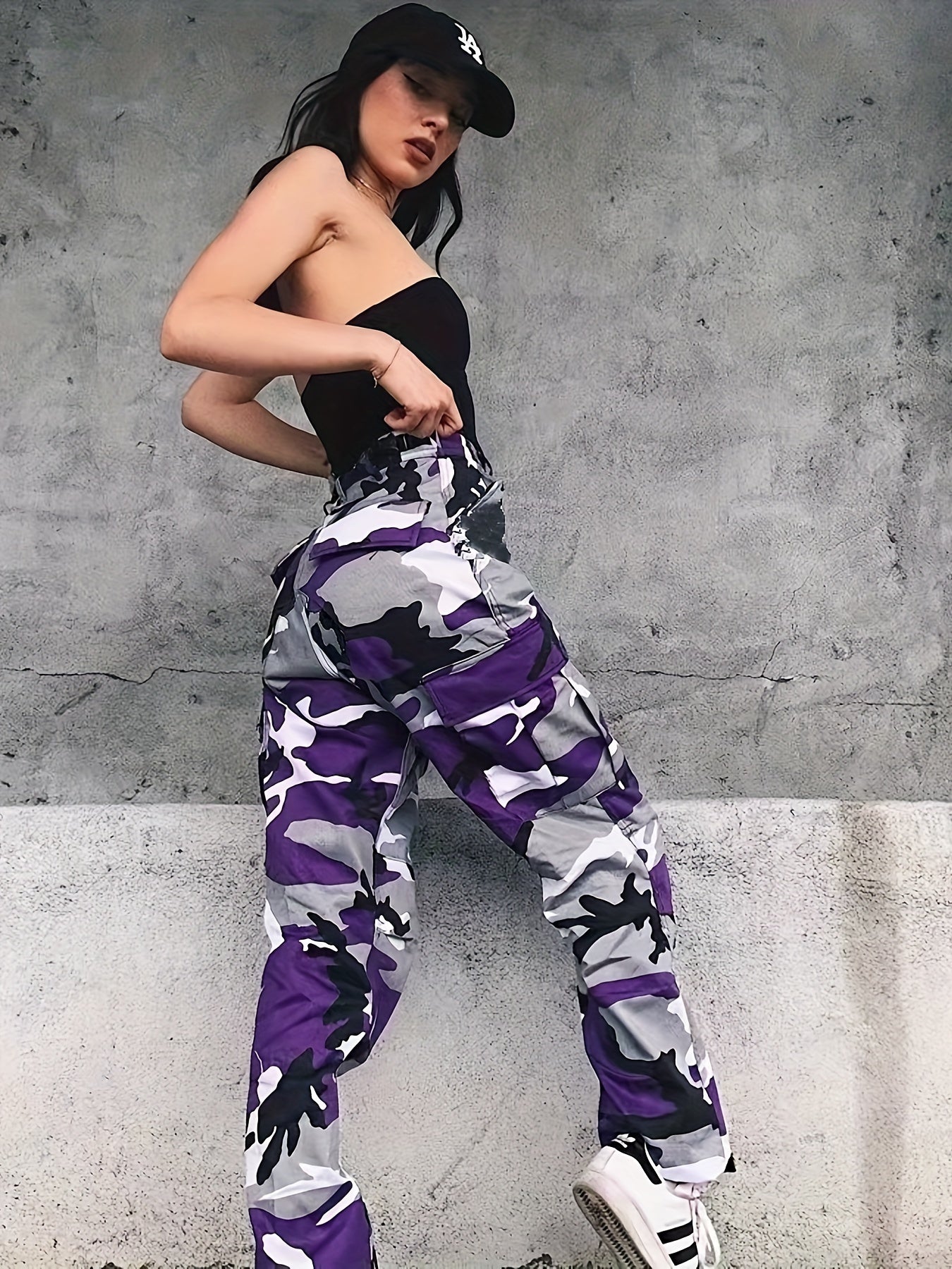 Women's Camo Flap Pockets Cargo Pants | Mid-Stretch