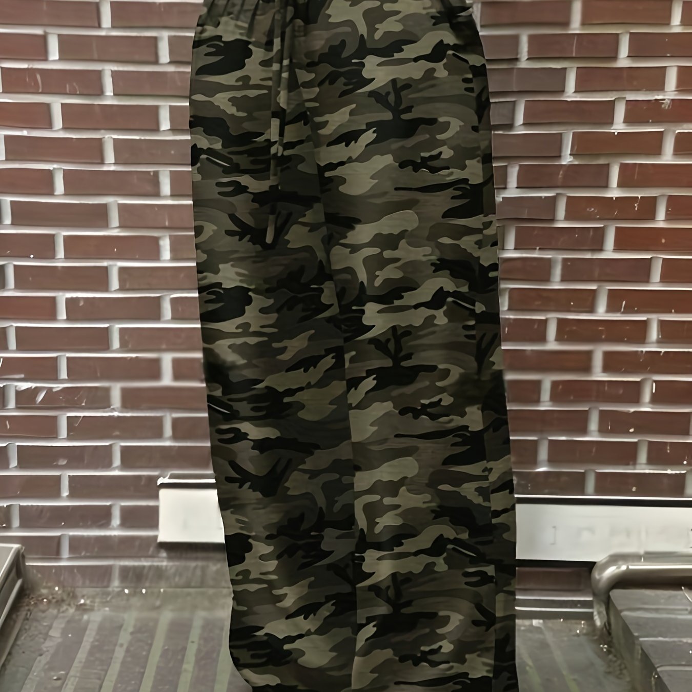 Women's Camo Print Wide-Leg Pants | Casual, Stretchy Polyester Blend