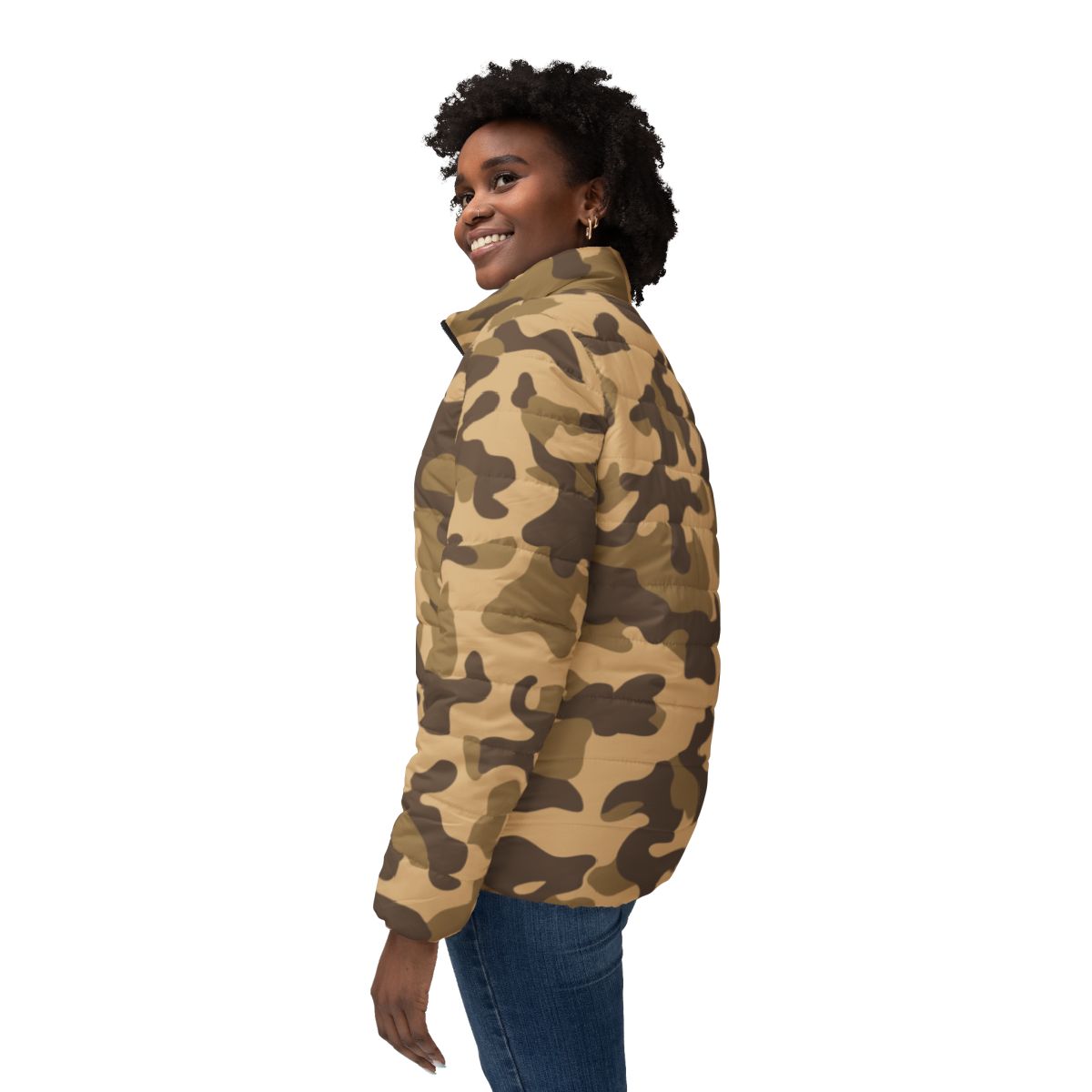 Women’s Camo Puffer Jacket | Khaki Camouflage
