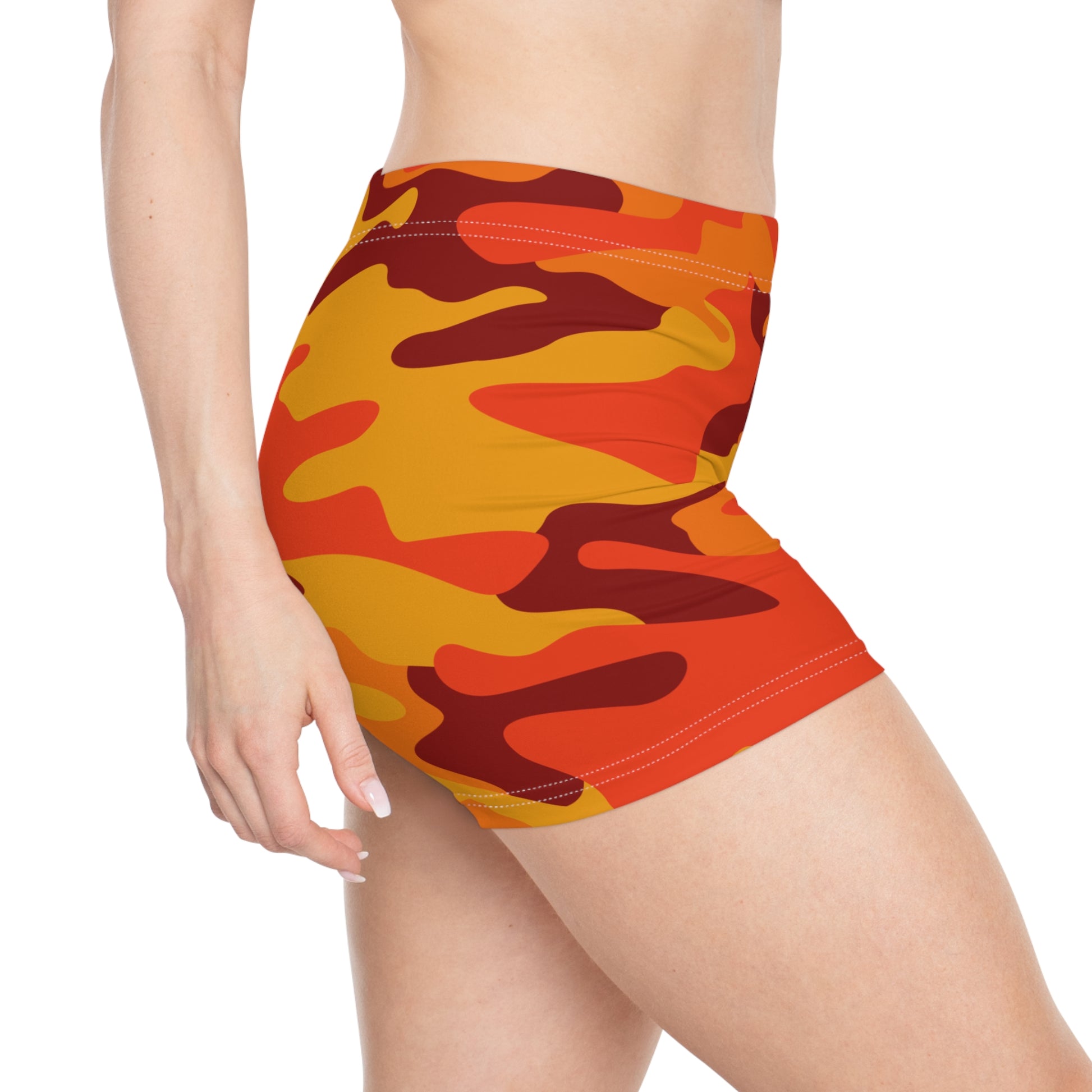 Women's Camo Shorts | Tight Fit | Orange & Red Camouflage style