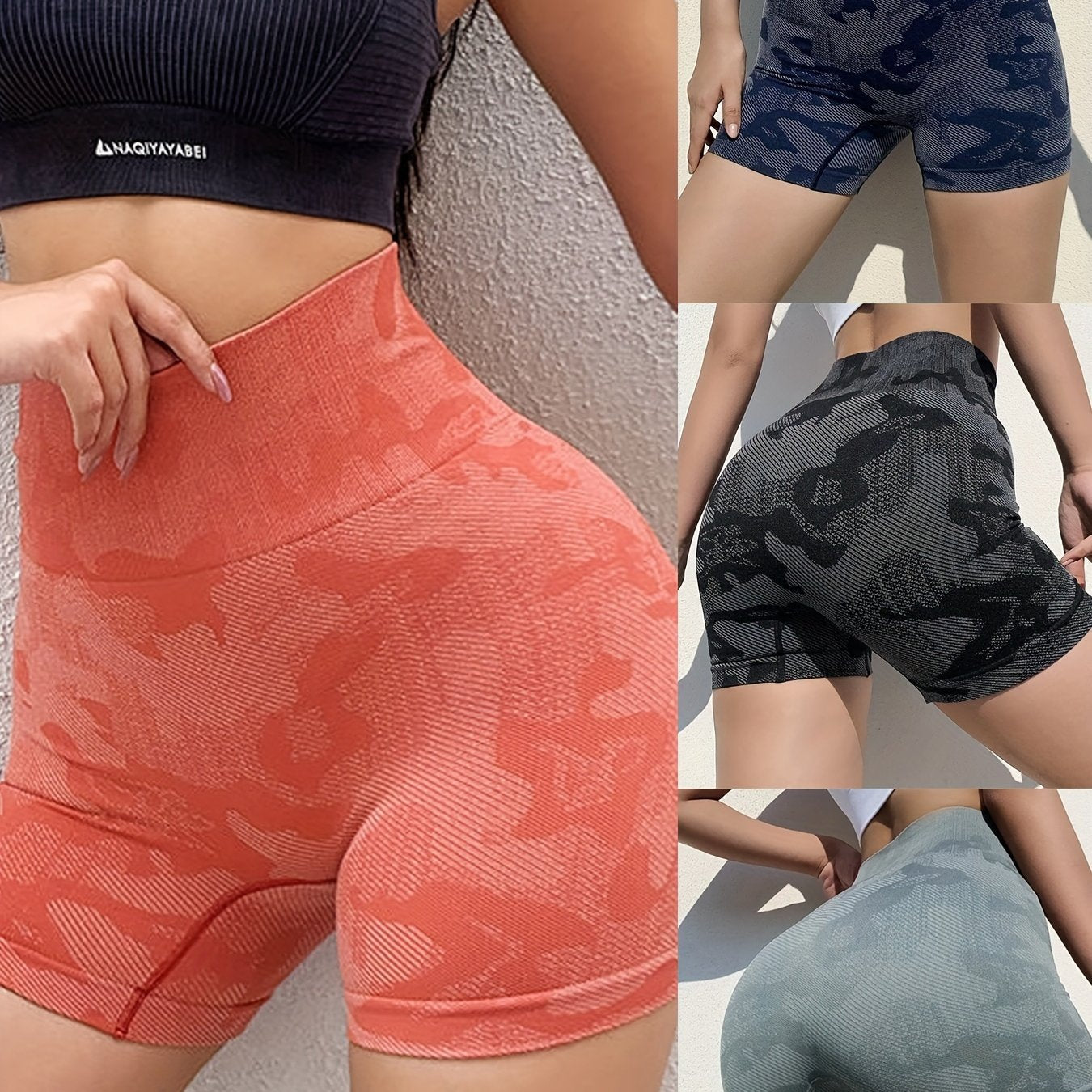 Women's Camo Yoga Shorts: High-Waist, Medium Support, 4pcs