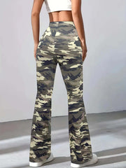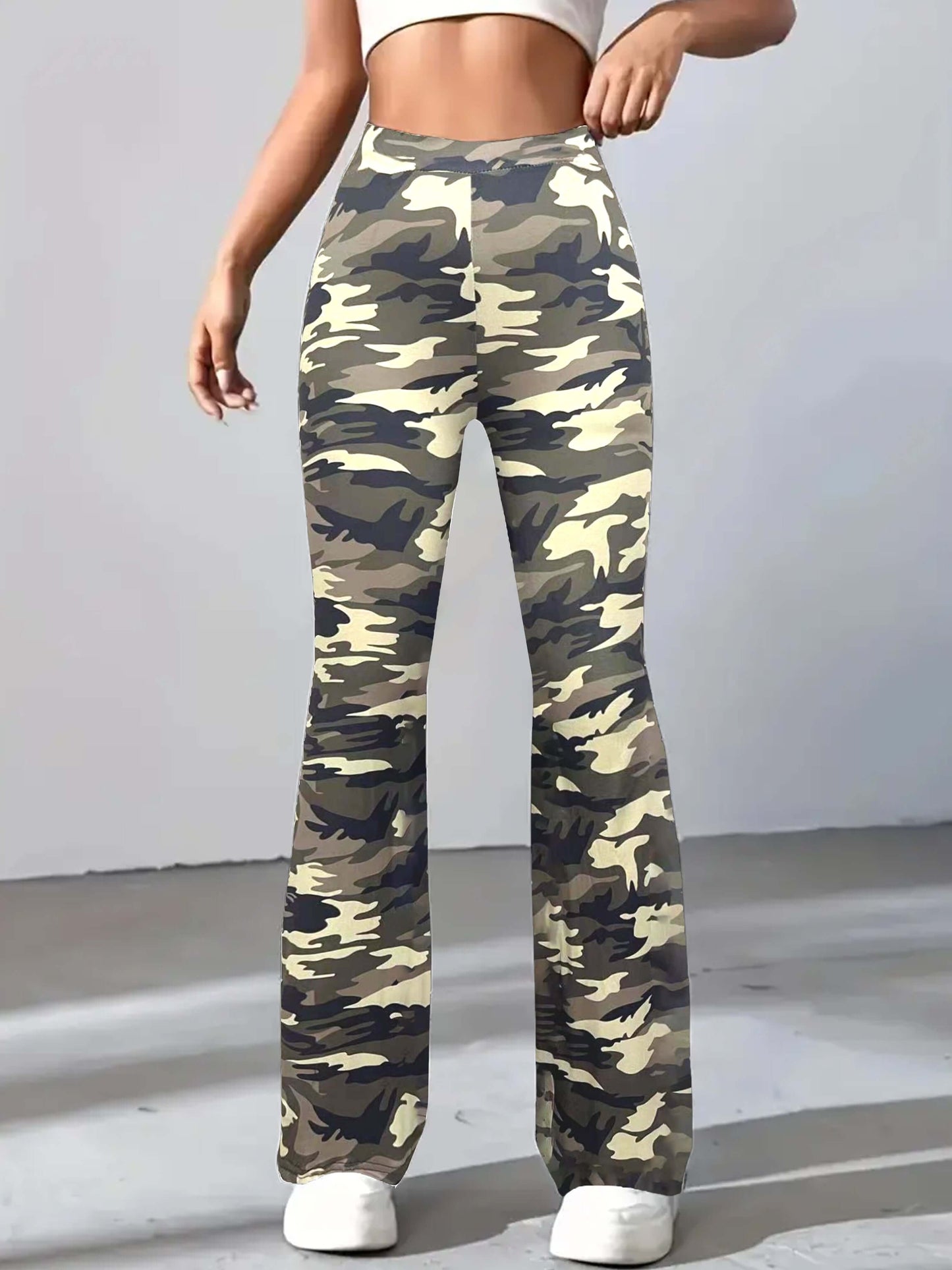 Women'S Casual Camo Print Flare Leg Pants | Stretch Fit