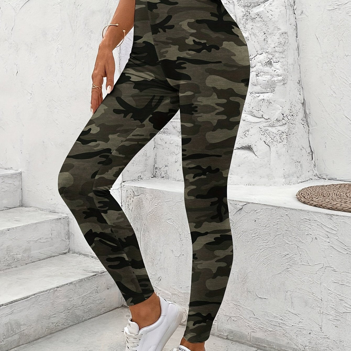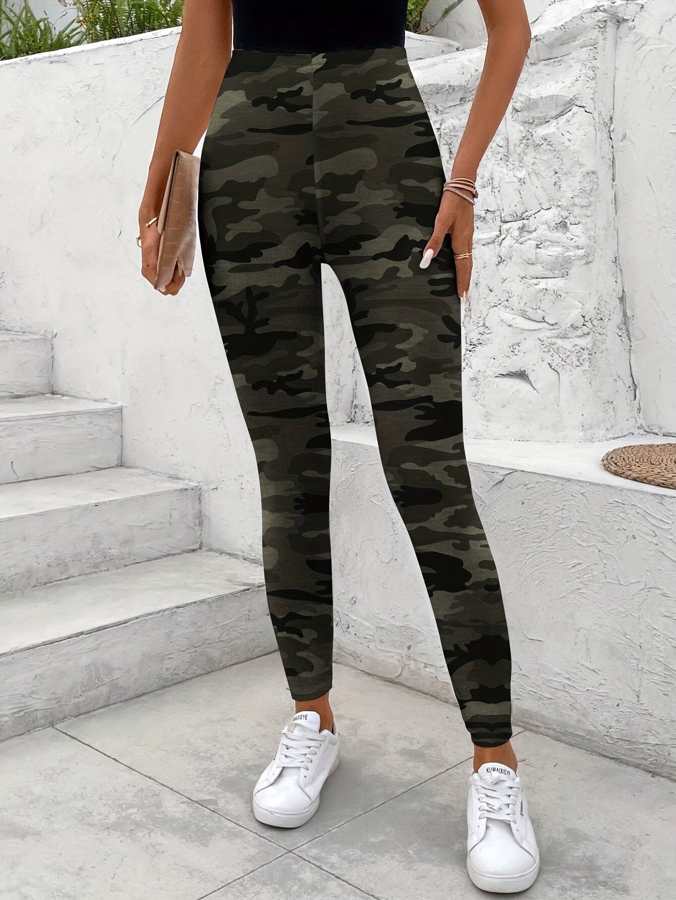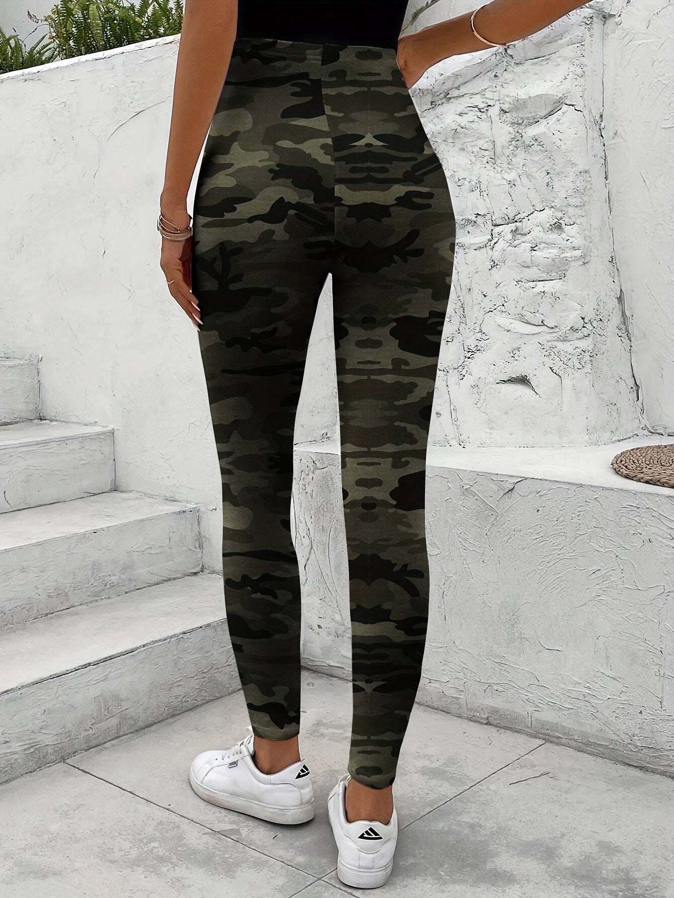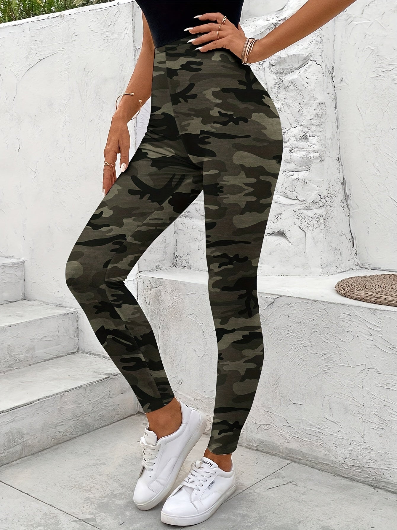 Women'S Elegant Camo Print Leggings - Polyester Spandex Blend, Long Length