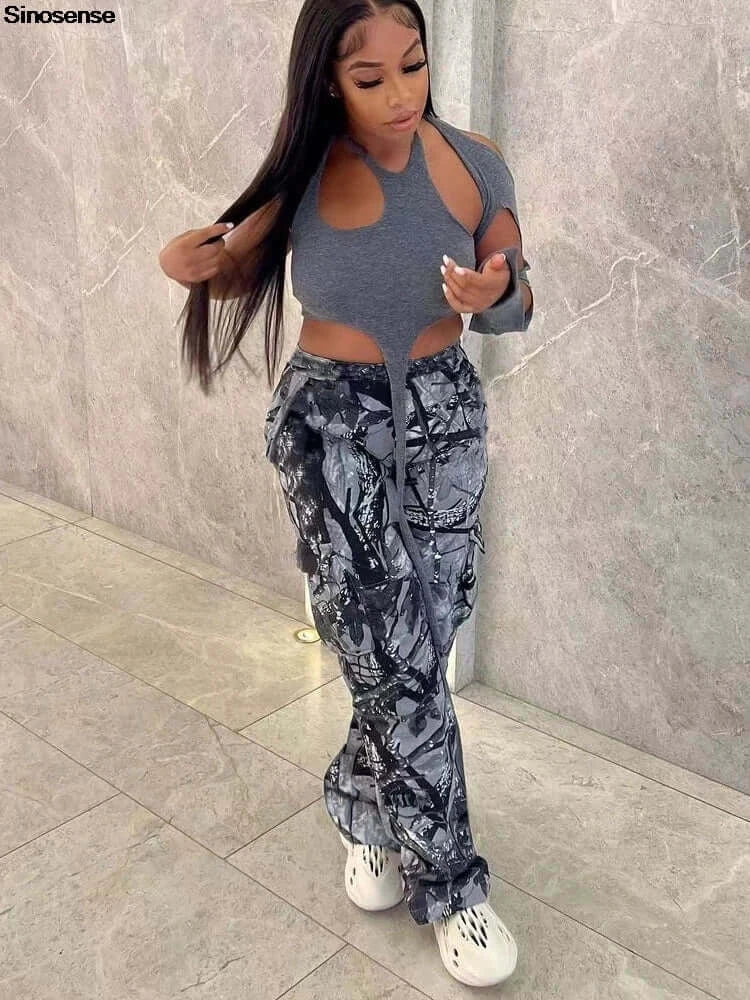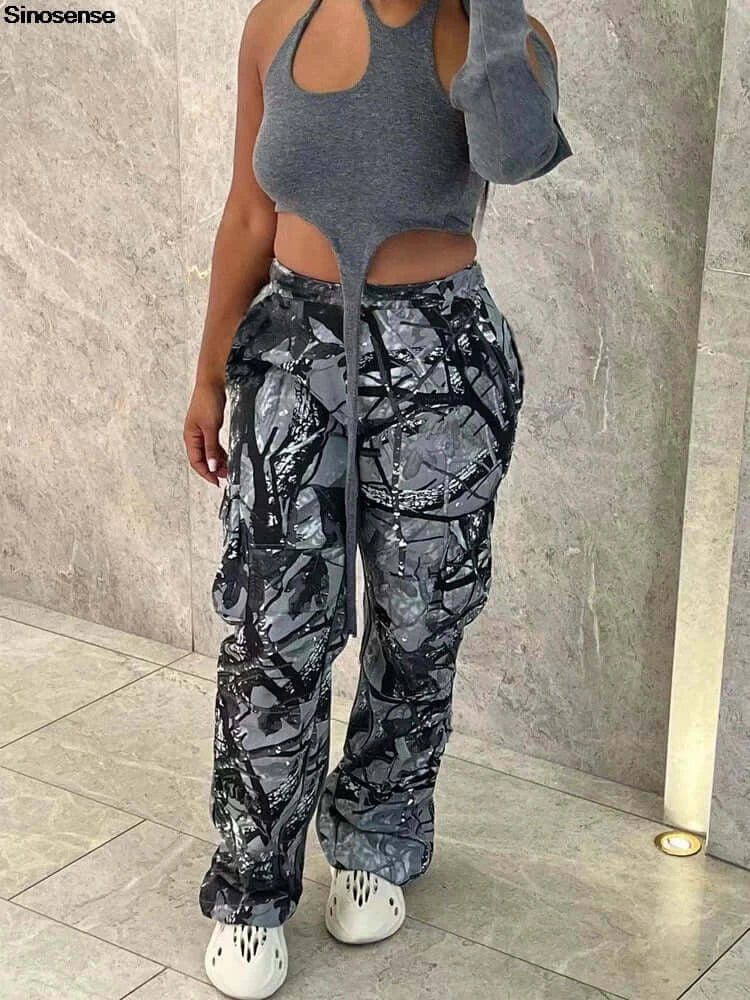 Women's High-Waist Camo Cargo Pants – Slim Fit & Stretchy
