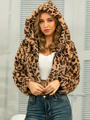 Women's Leopard Print Crop Jacket: Zip-Up, Hooded, Fall/Winter