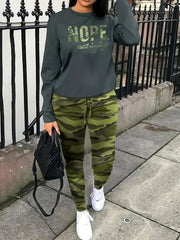 Upgrade your casual wardrobe with the Women's Letter & Camo Print Set. This stylish set features a comfortable crew neck top paired with matching shorts, both adorned with bold letter and camouflage prints. Crafted from a soft, breathable fabric blend, the set ensures a relaxed, all-day fit perfect for lounging, running errands, or casual outings. The crew neck design of the top offers a classic, flattering look, while the shorts feature an elastic waistband for added comfort and a secure fit. Versatile and eye-catching, this set is a must-have for those looking to combine comfort and style effortlessly. Available in multiple sizes for a perfect fit.