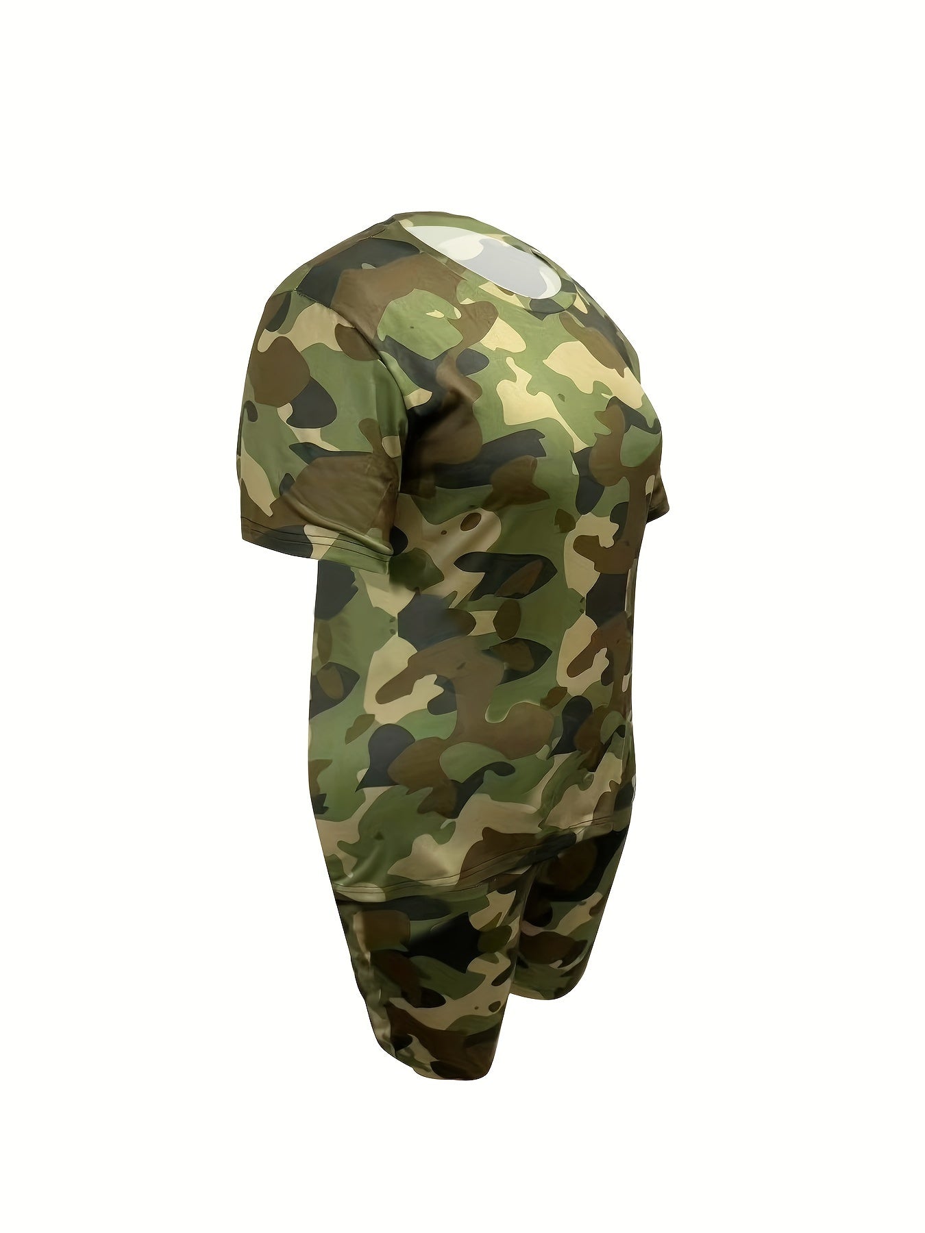 Women's Plus Camo Set: Short Sleeve T-Shirt & Biker Shorts