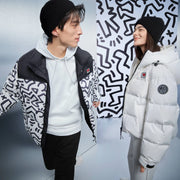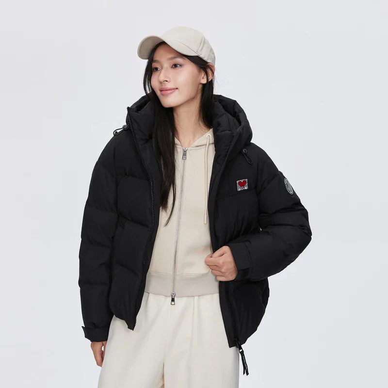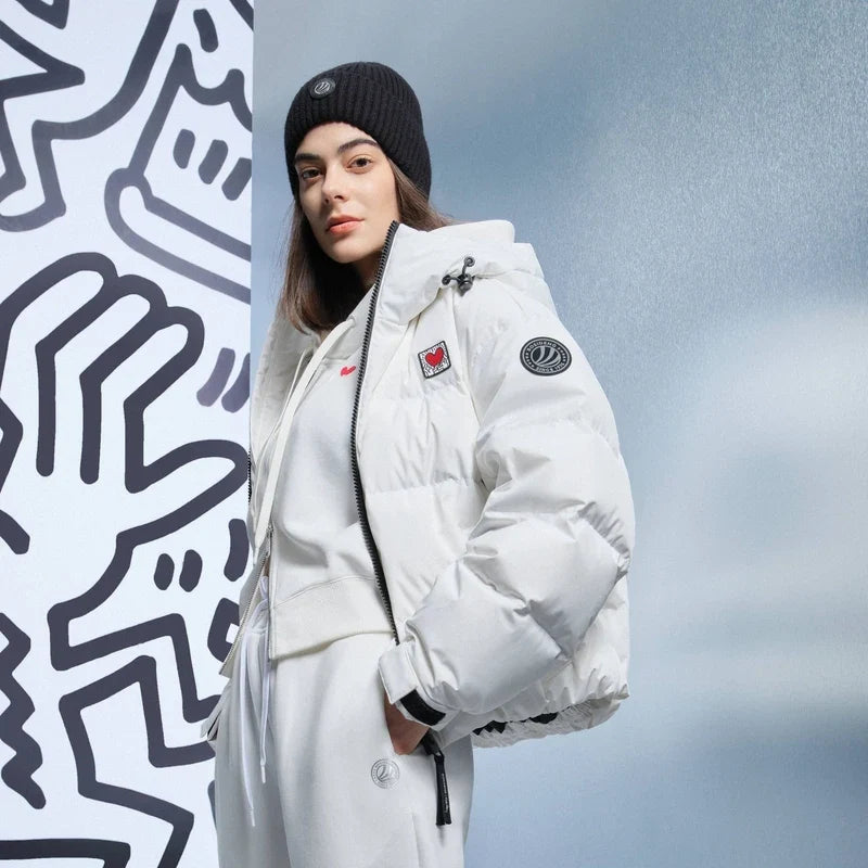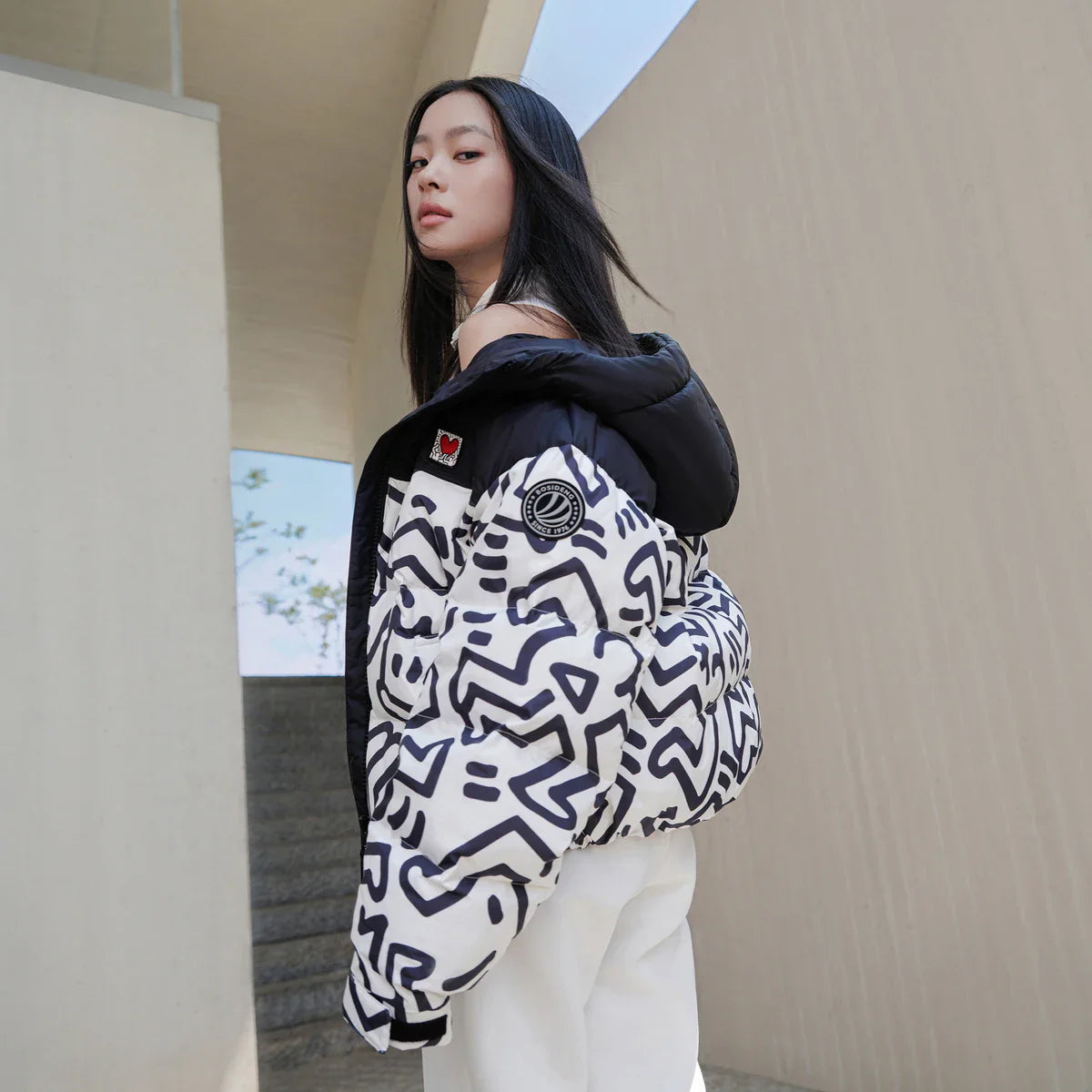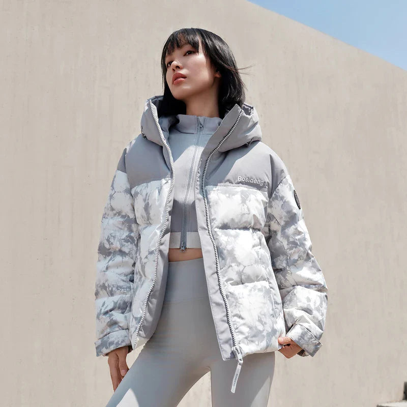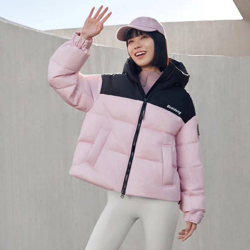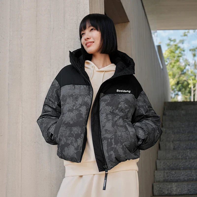 Brave the deep winter in style with the Women's Short Down Puffer Jacket, designed for exceptional warmth and fashion-forward appeal. Crafted with 90% white duck down filling, this thick yet lightweight jacket provides premium insulation without the bulk. The patchwork geometric design and sporty color-blocking details add a modern, trendy touch to your winter wardrobe.