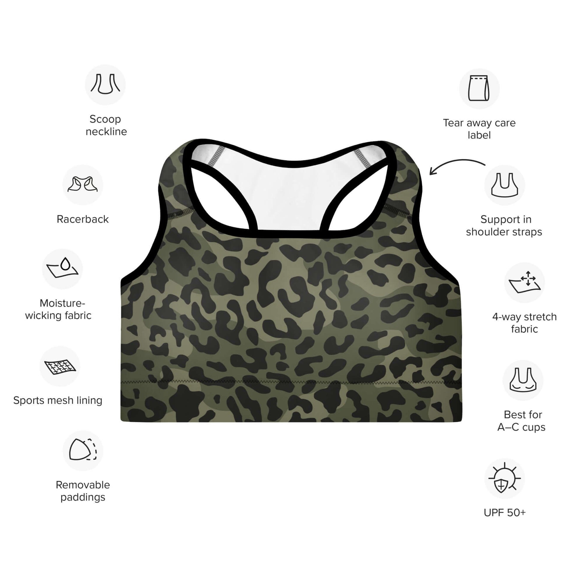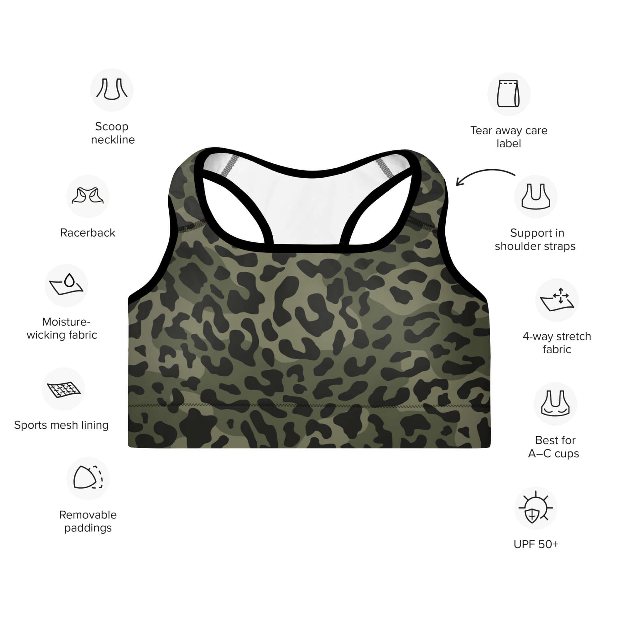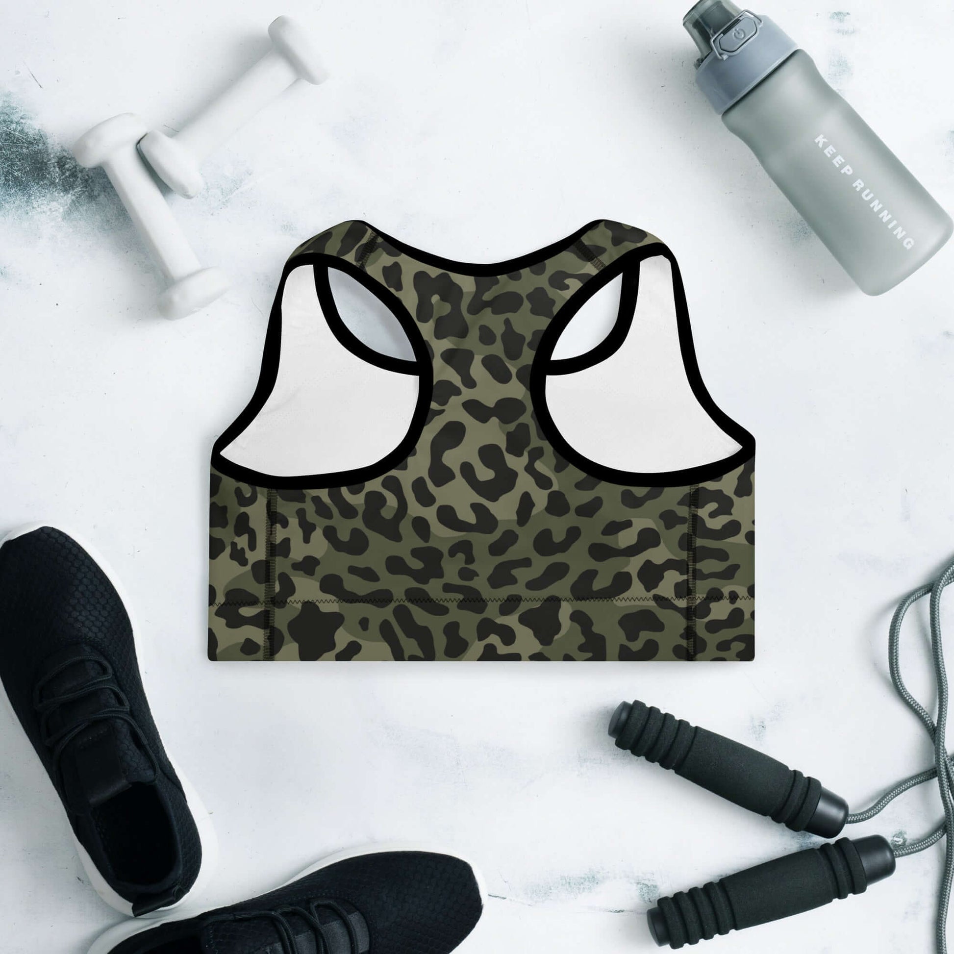Get ready to conquer your workouts with the Women's Sports Bra in Brown and Black Leopard Print. This stylish design not only provides comfortable support, but also features a fierce leopard print that will make you stand out in the gym. With a perfect fit and added style, this sports bra will boost your confidence and performance.