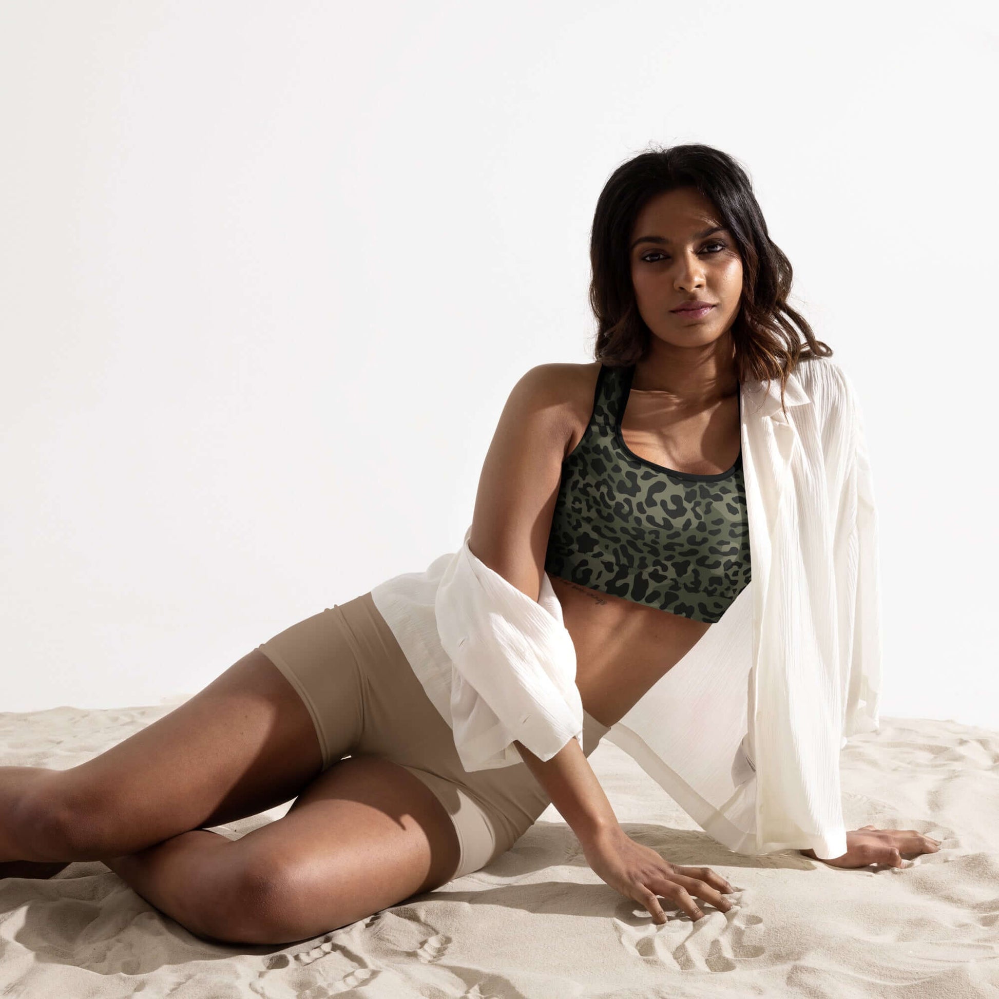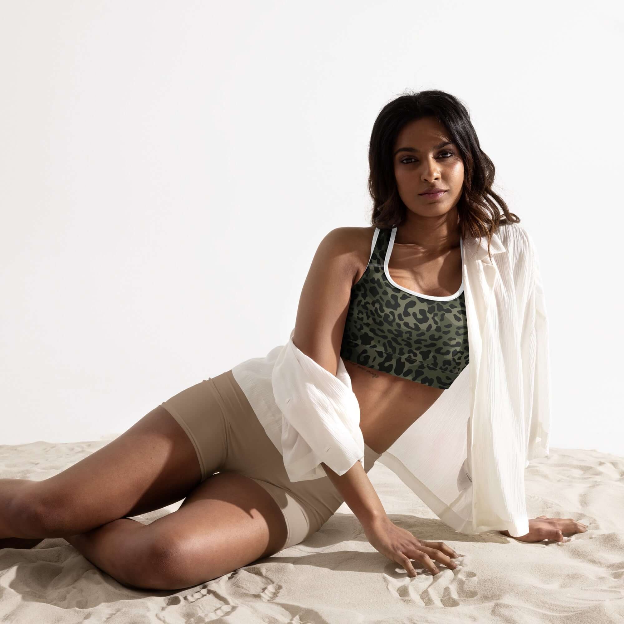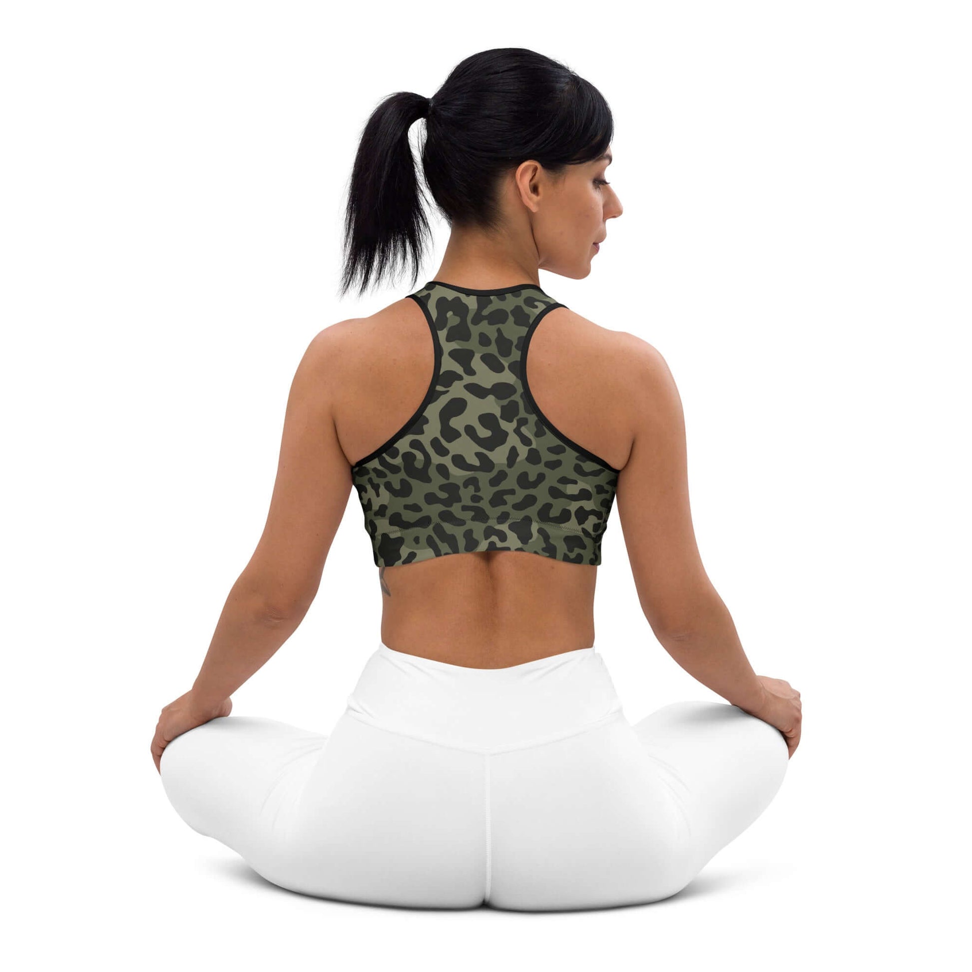 Get ready to conquer your workouts with the Women's Sports Bra in Brown and Black Leopard Print. This stylish design not only provides comfortable support, but also features a fierce leopard print that will make you stand out in the gym. With a perfect fit and added style, this sports bra will boost your confidence and performance.