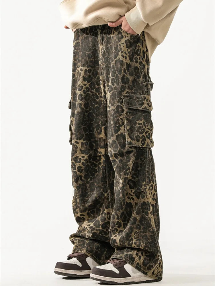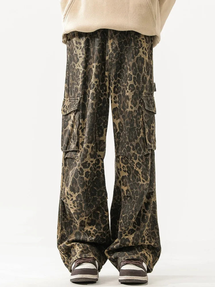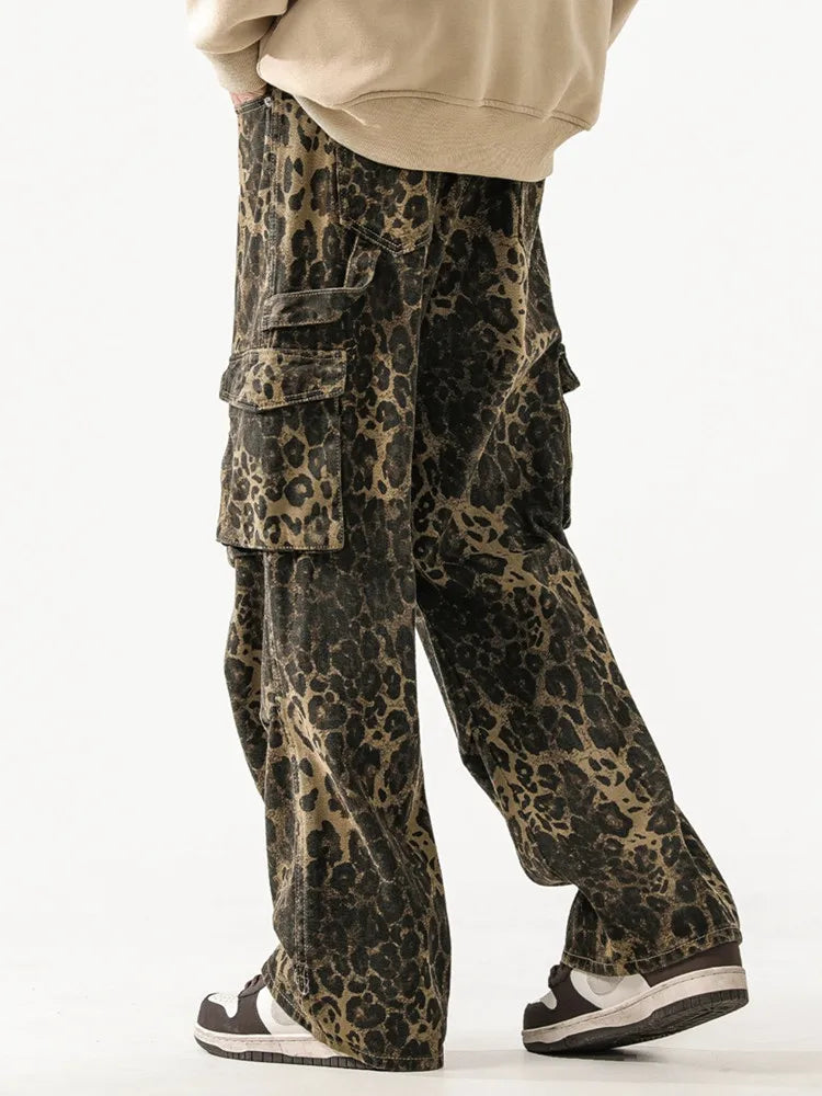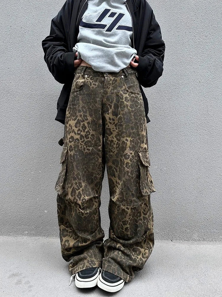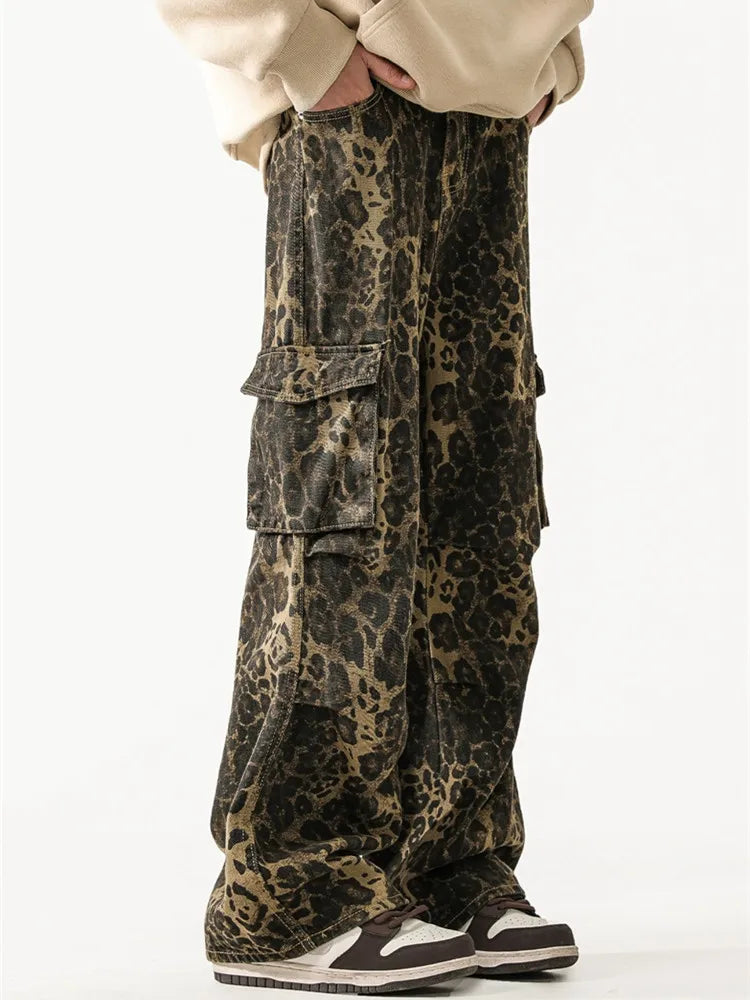 Y2K Leopard Print Baggy Jeans for Men | Streetwear Cargo Pants
