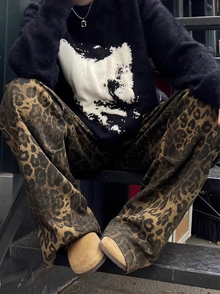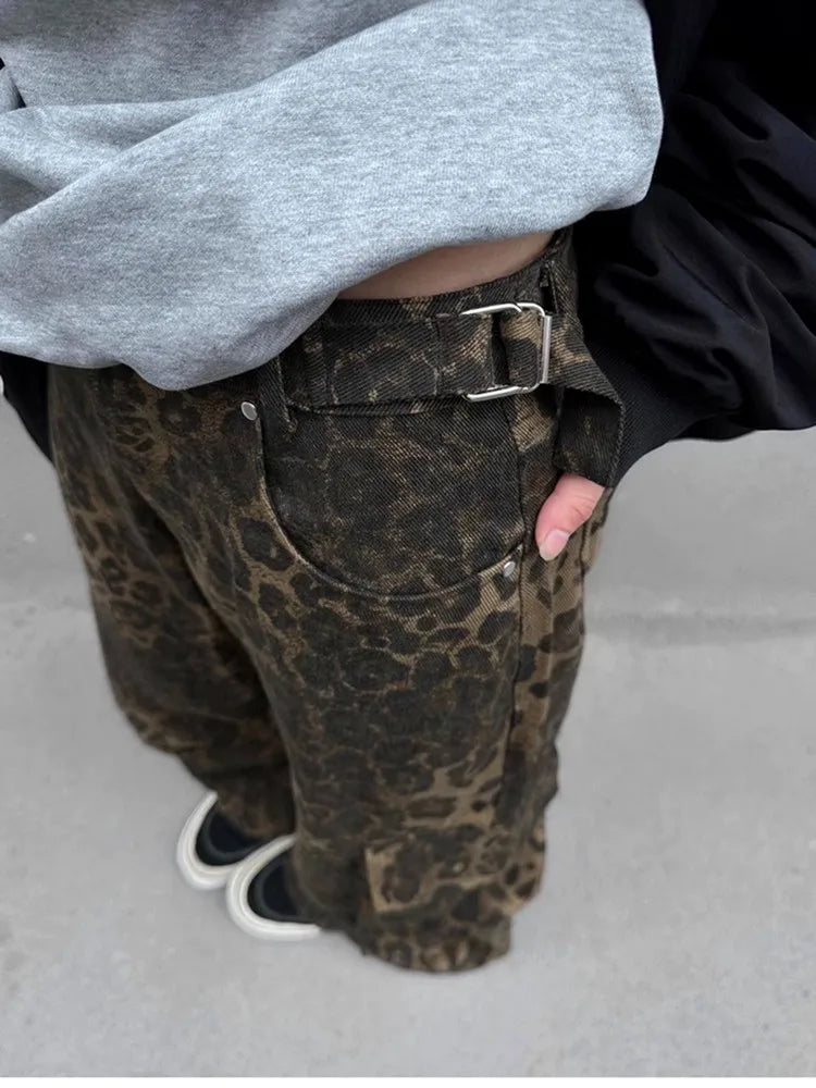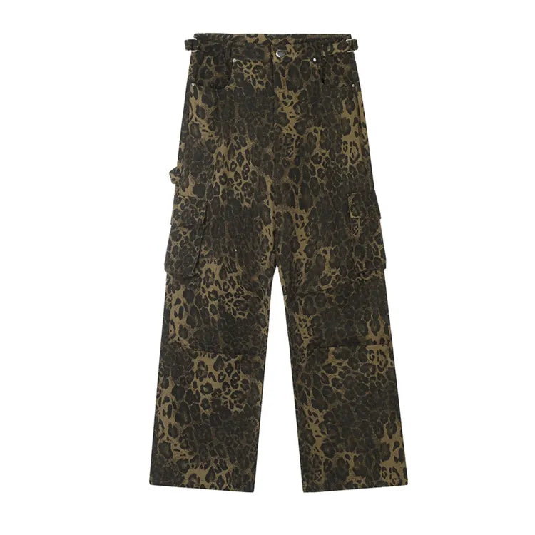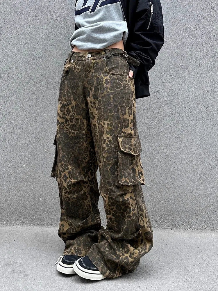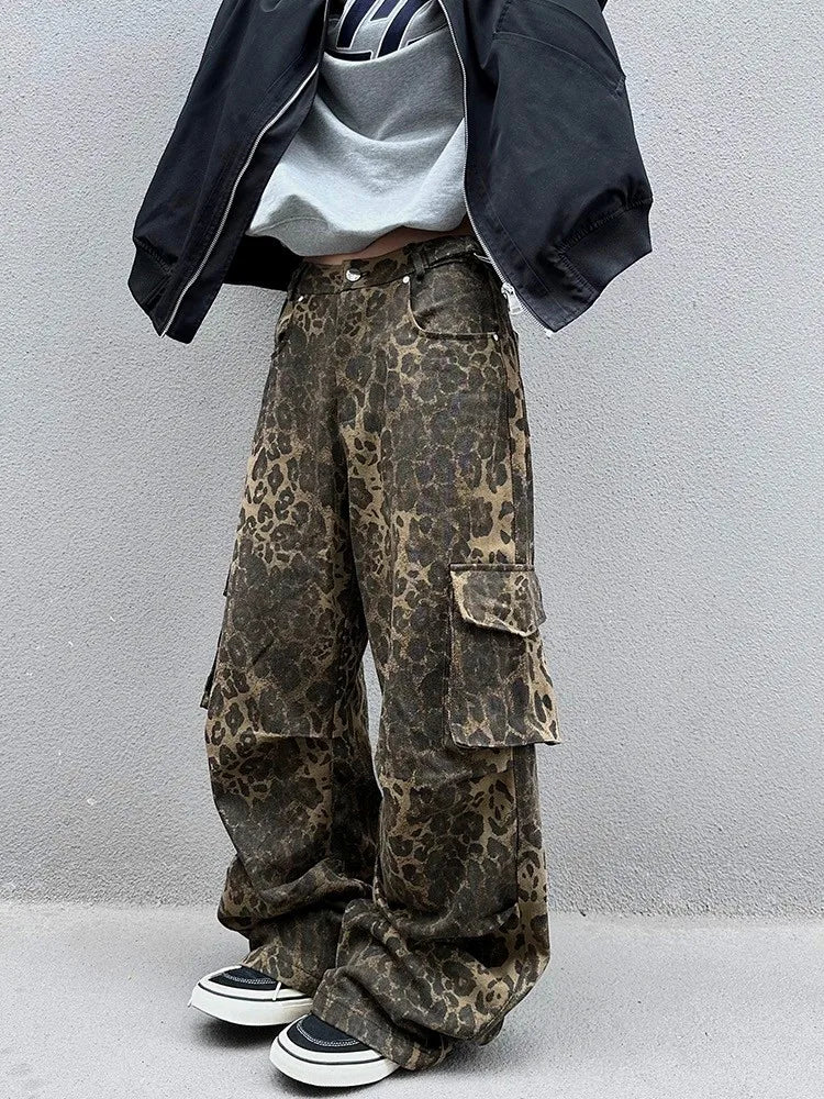 Y2K Leopard Print Baggy Jeans for Men | Streetwear Cargo Pants