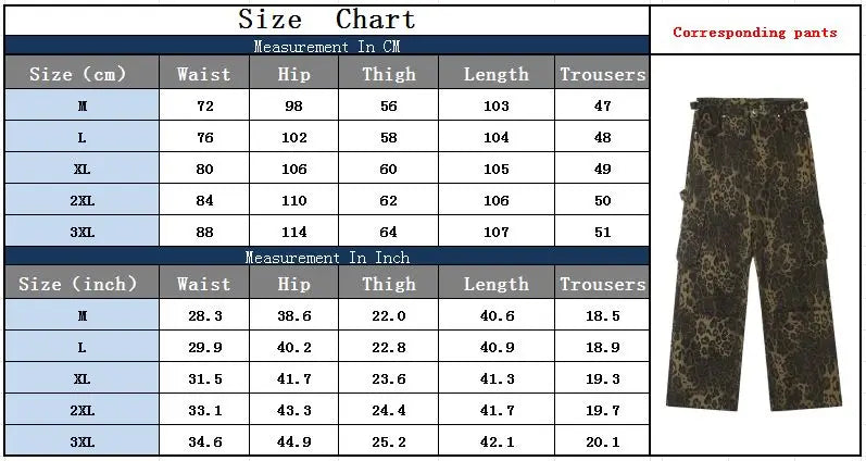 Embrace the bold and rebellious spirit of streetwear with these Y2K Leopard Print Baggy Jeans. Designed for the modern man who loves to stand out, these cargo jeans merge hip hop culture, high street vibes, and vintage flair, creating a stylish yet comfortable fit perfect for everyday wear.