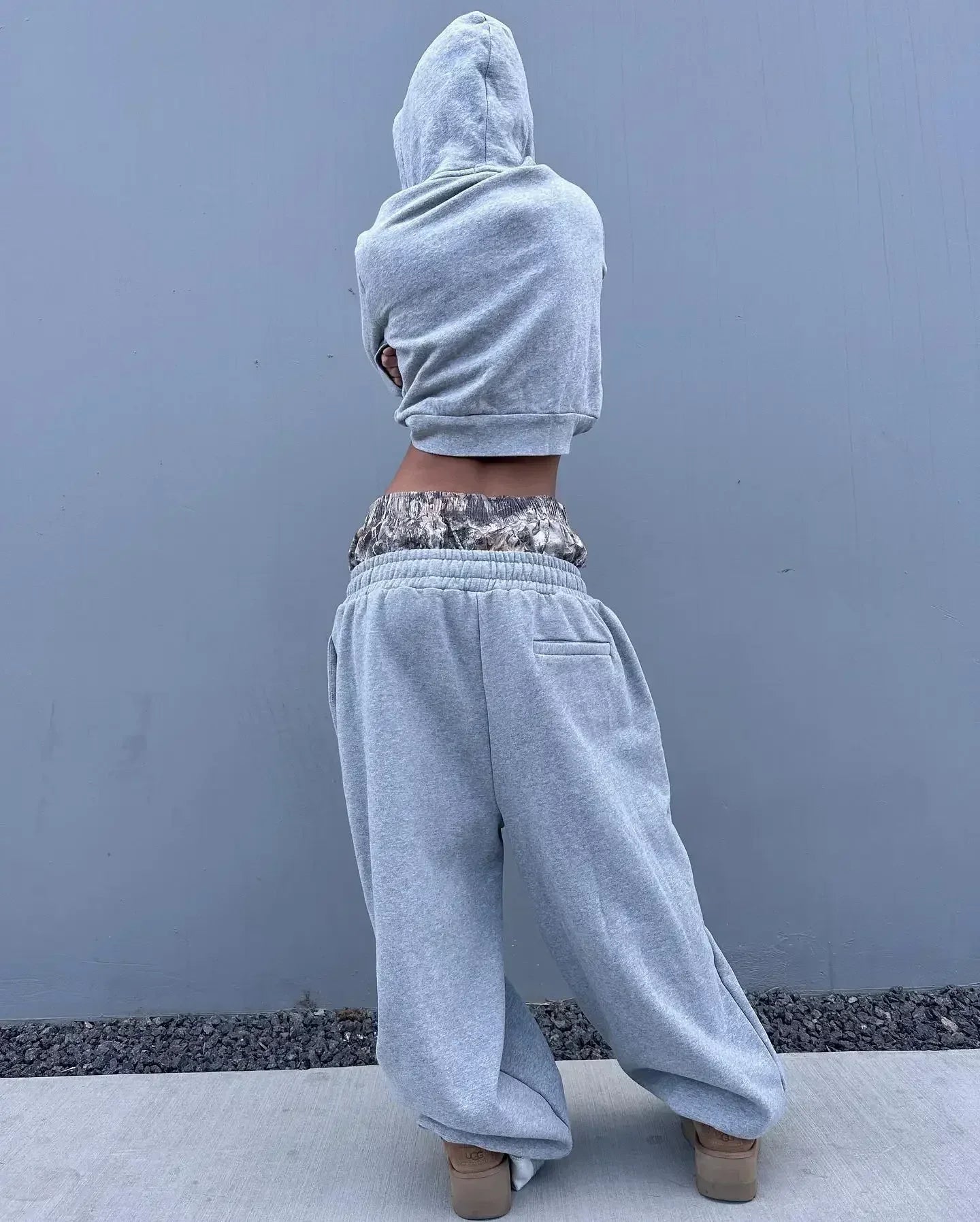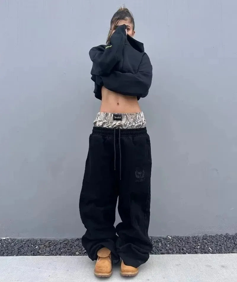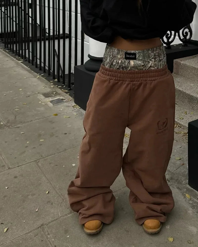 Y2K Vintage Camo Embroidered Waist Sweatpants High-Waisted
