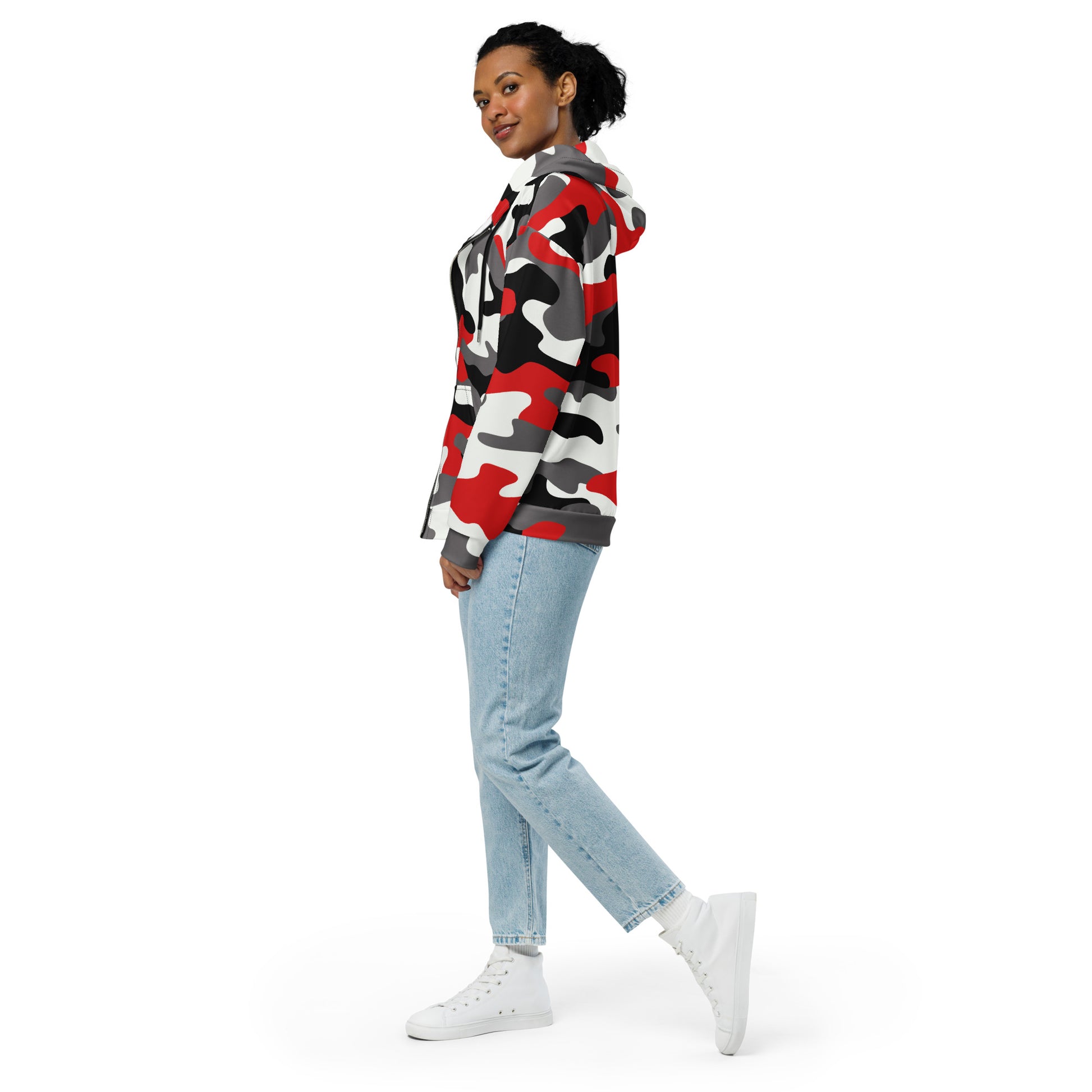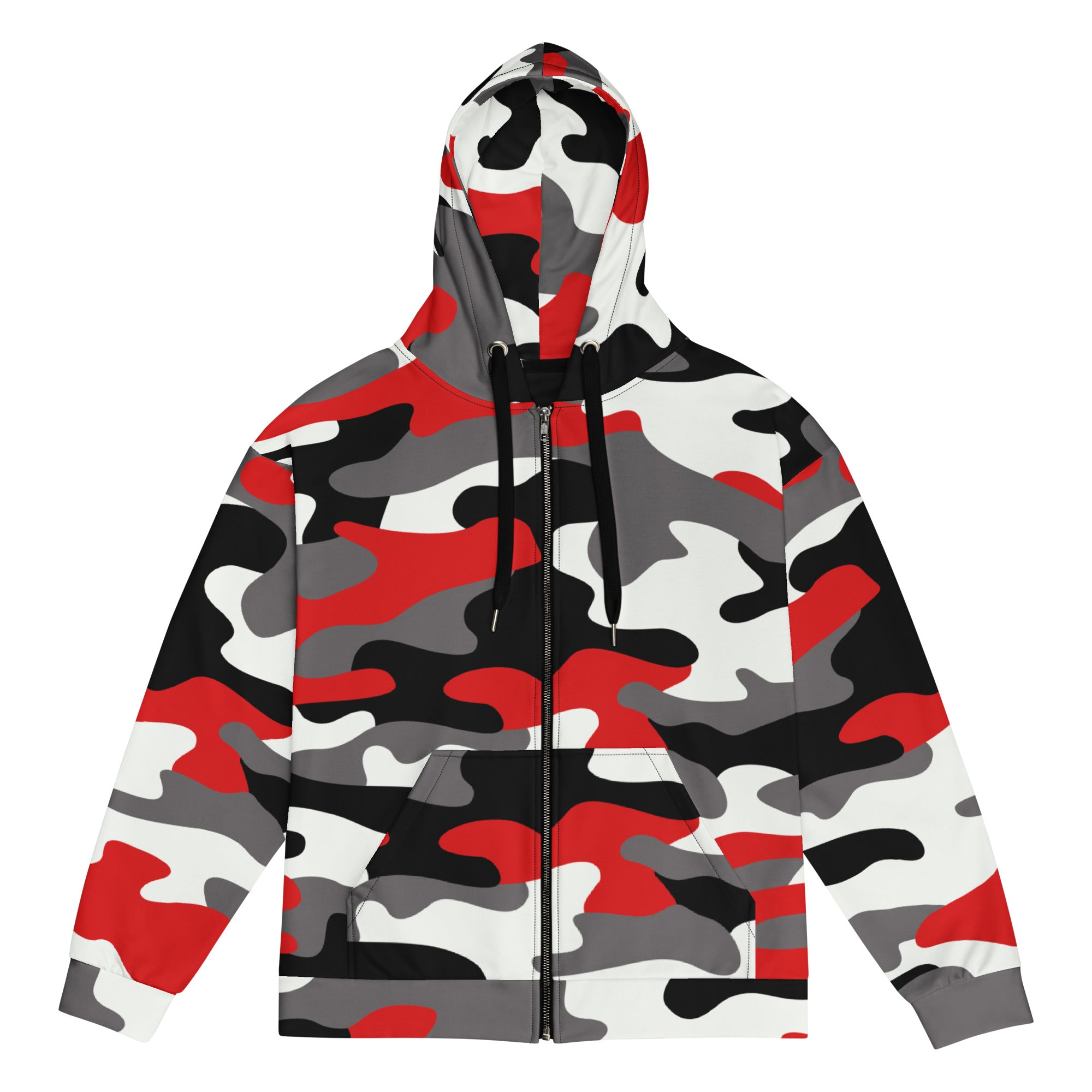 Camo Zip Hoodie – Red, Black & White Style