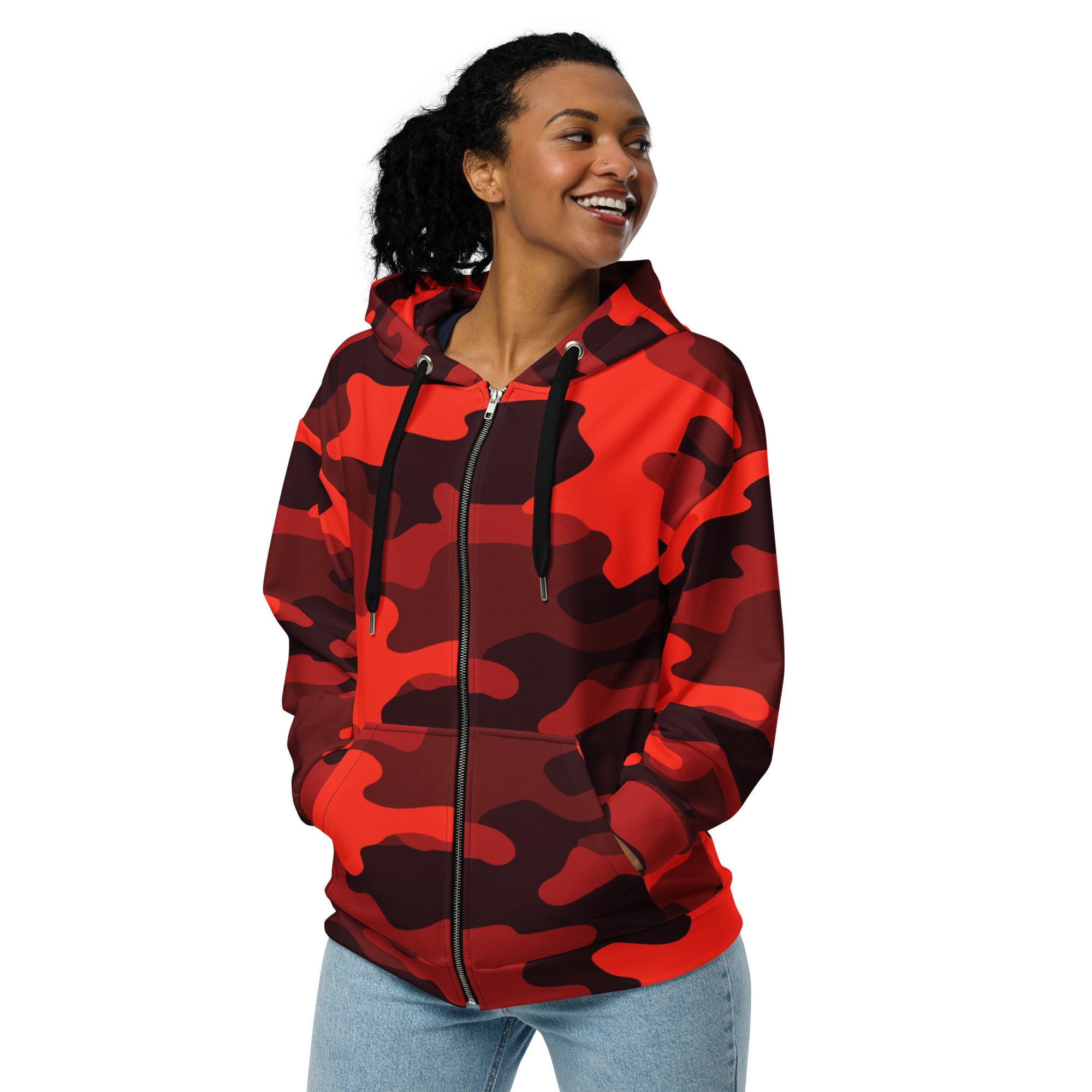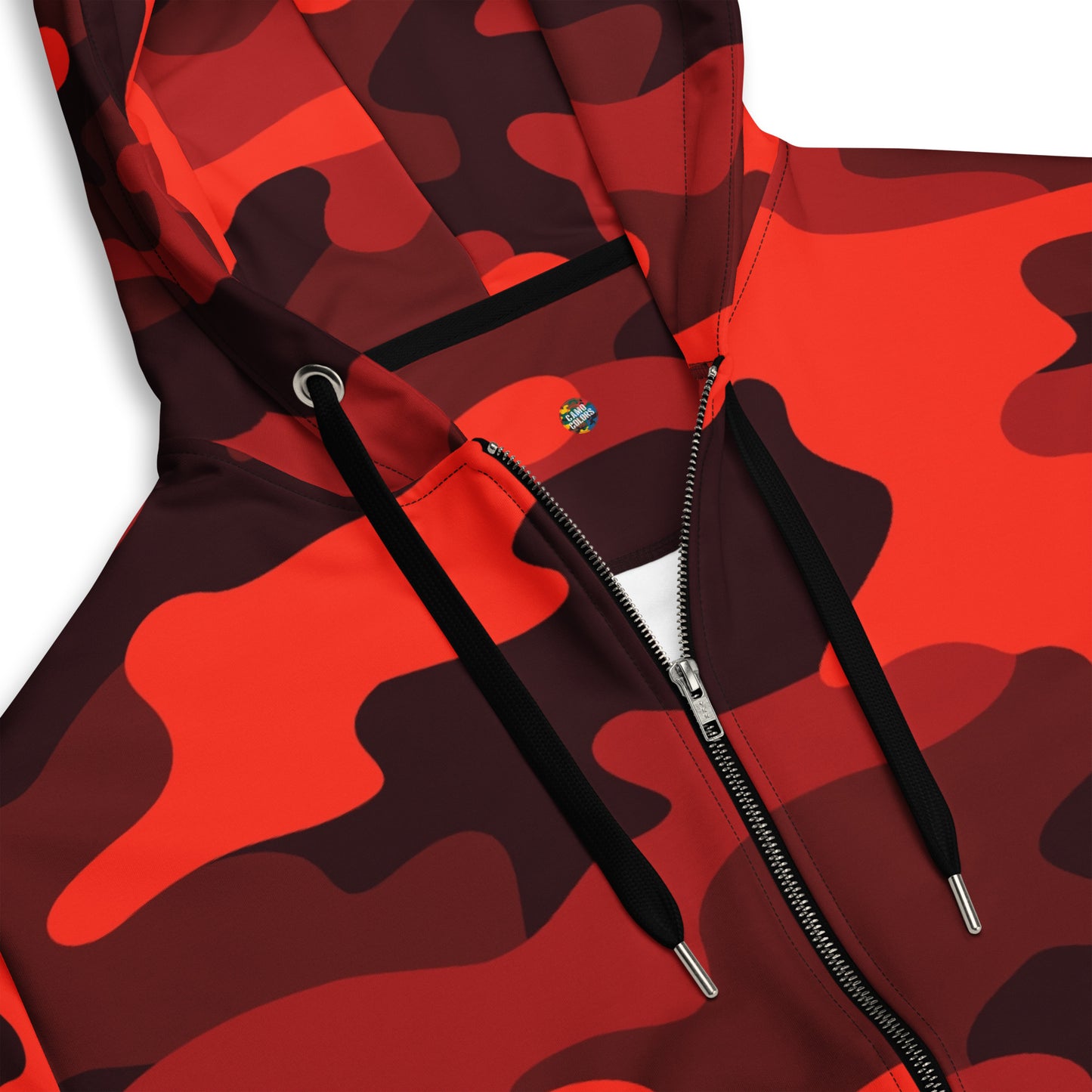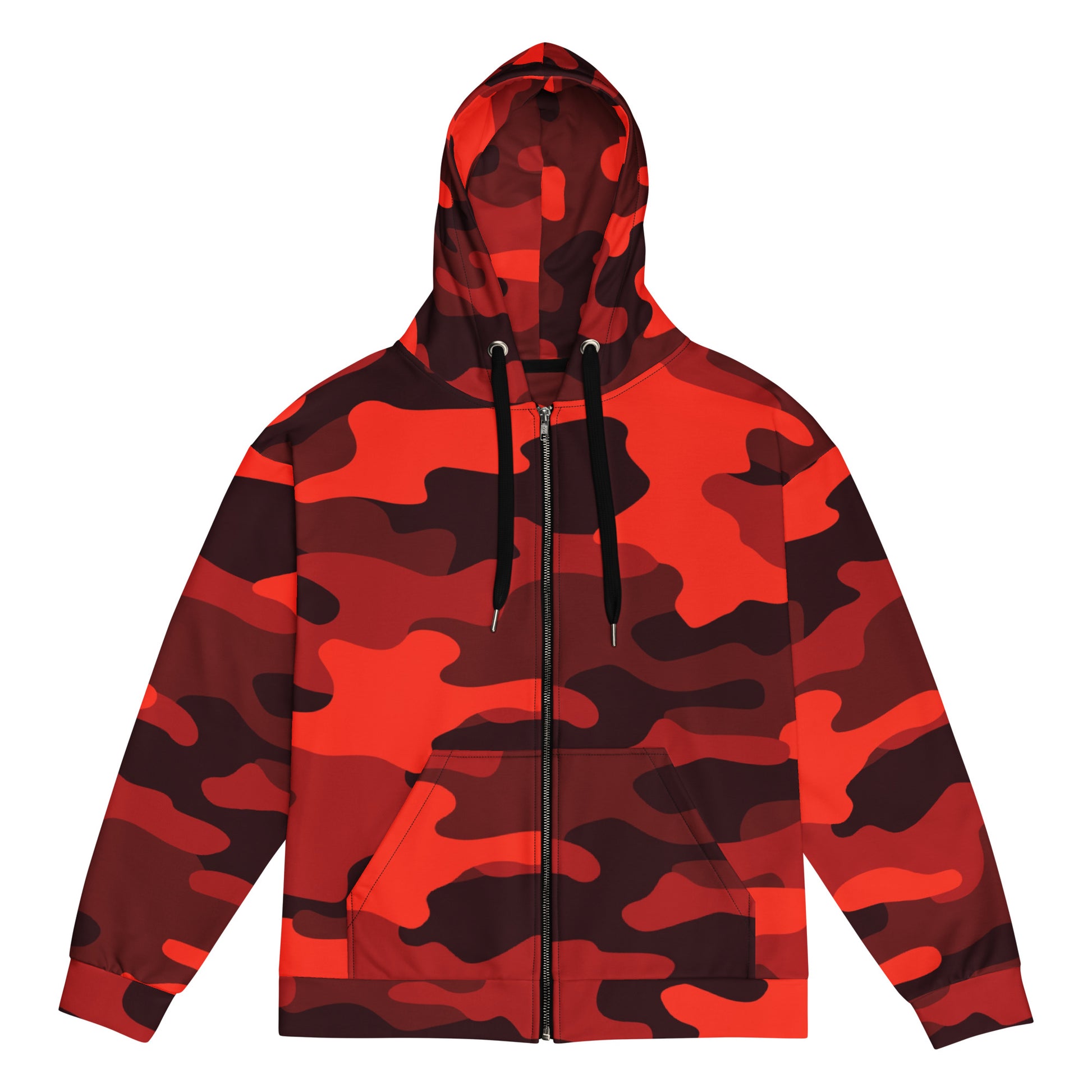 Camo Zip Hoodie – Red & Black Warrior Camo
