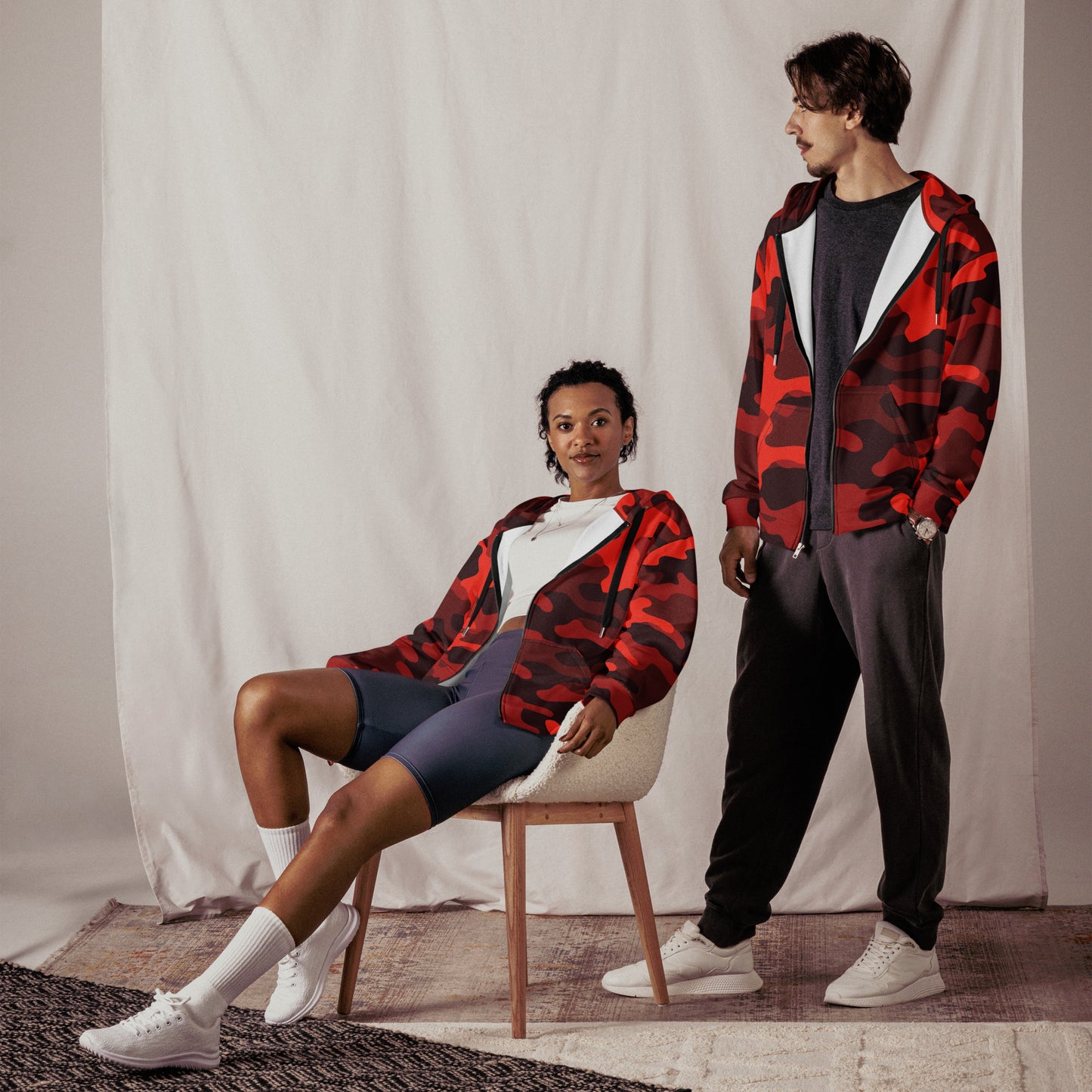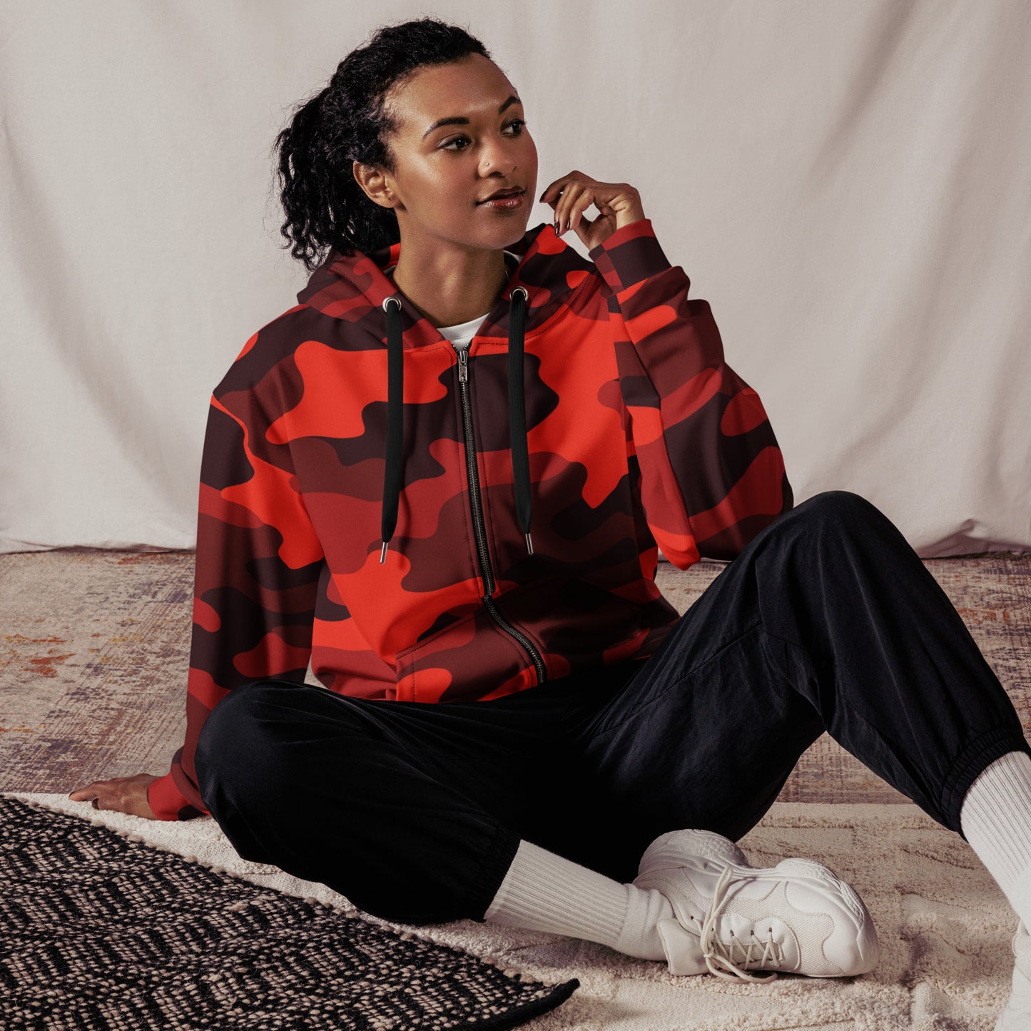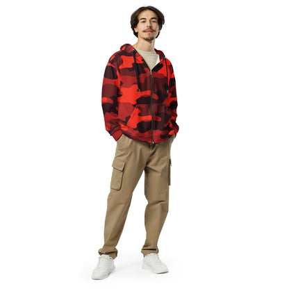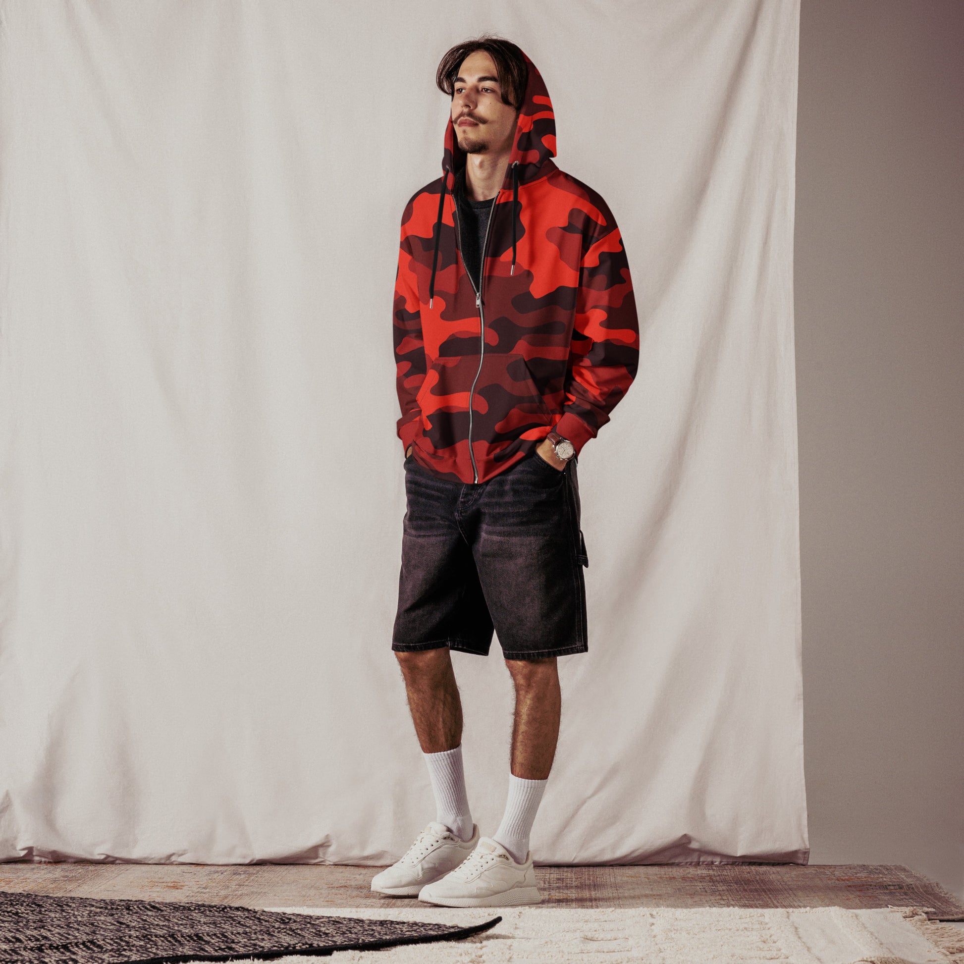 Camo Zip Hoodie – Red & Black Warrior Camo
