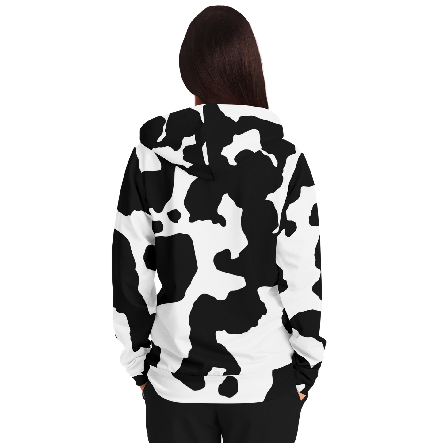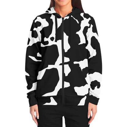 Zip-Up Hoodie | Black & White Camouflage style