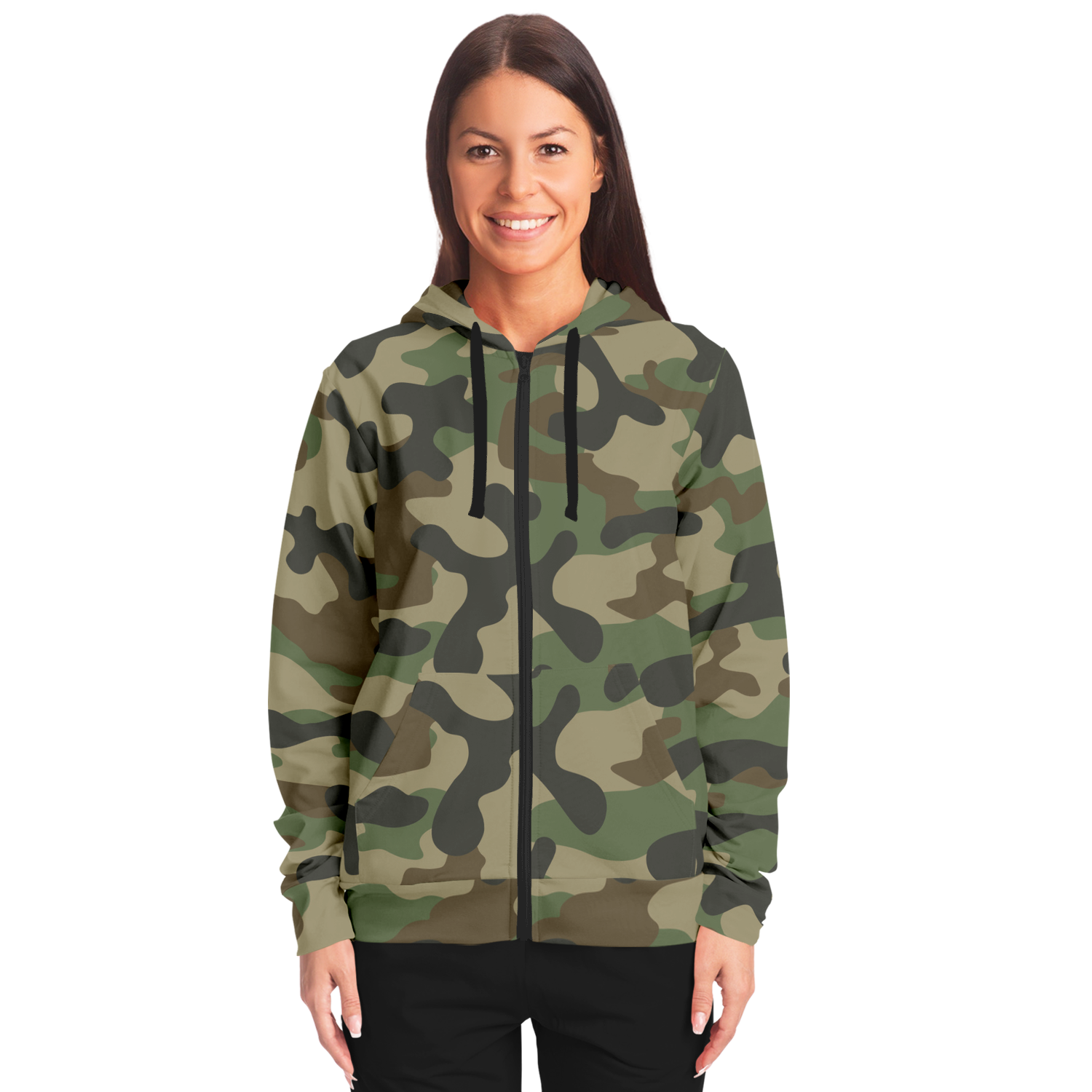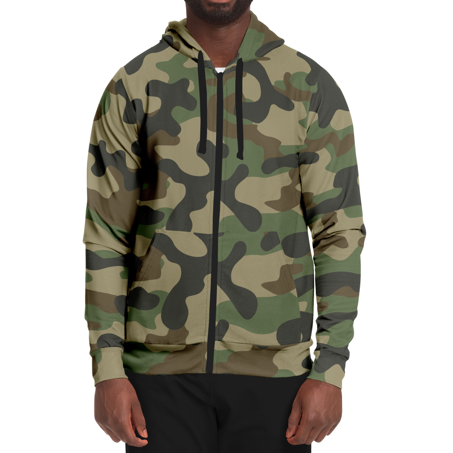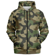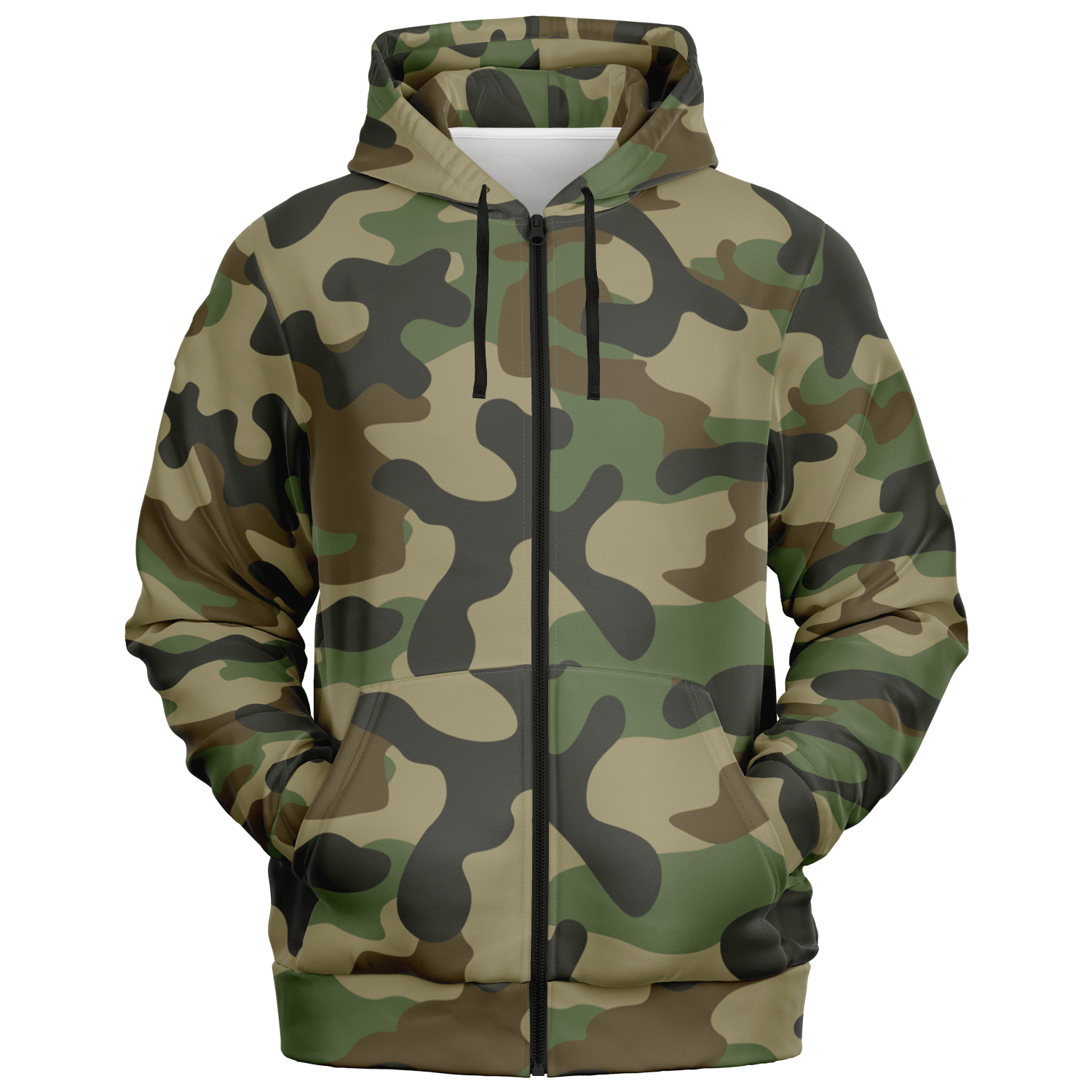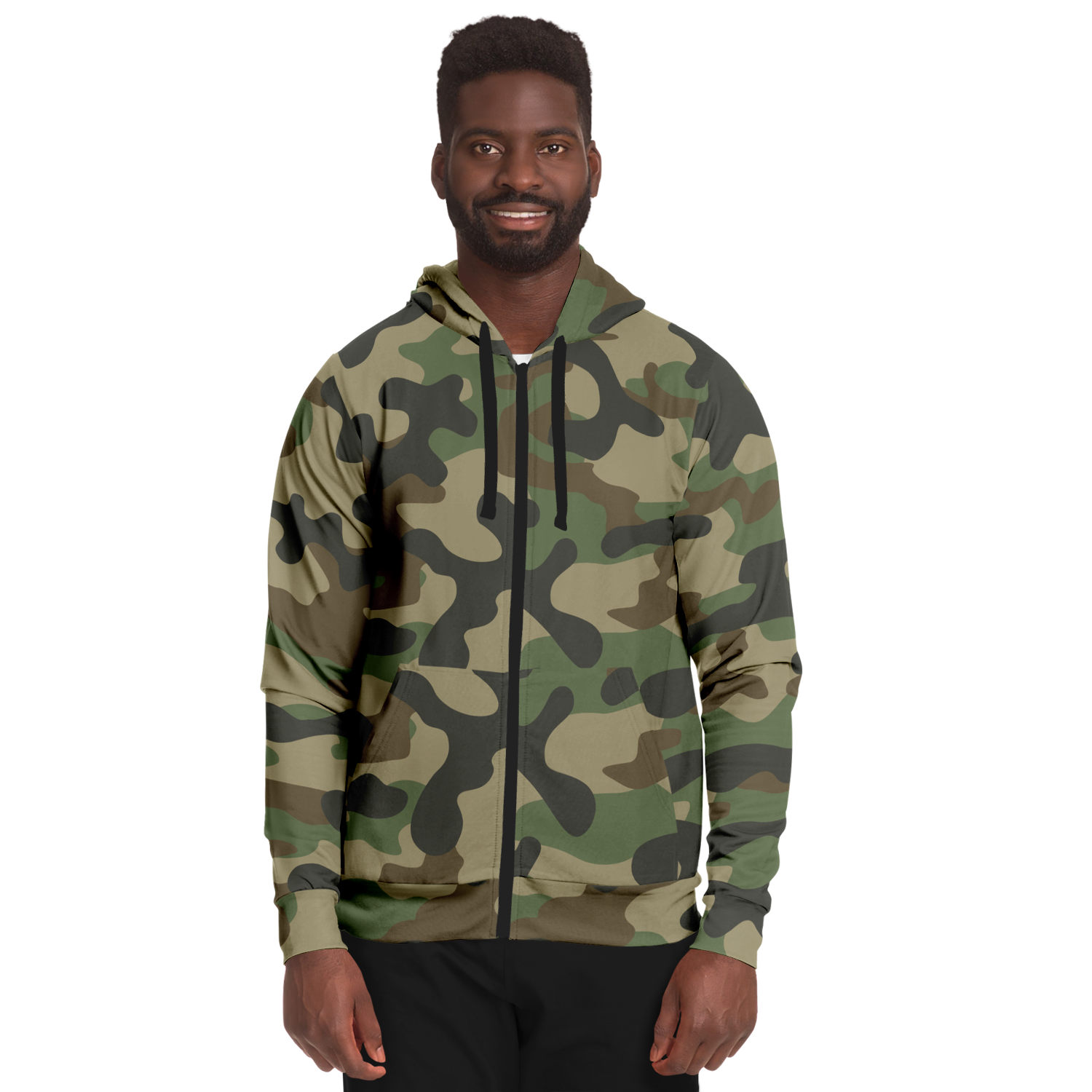 This military brown camouflage zip-up hoodie is perfect for anyone looking for both style and functionality. Made with high-quality materials, this hoodie is durable and comfortable. The camouflage design adds a unique touch and makes it perfect for outdoor activities. Stay warm and fashionable with this versatile zip-up hoodie.
