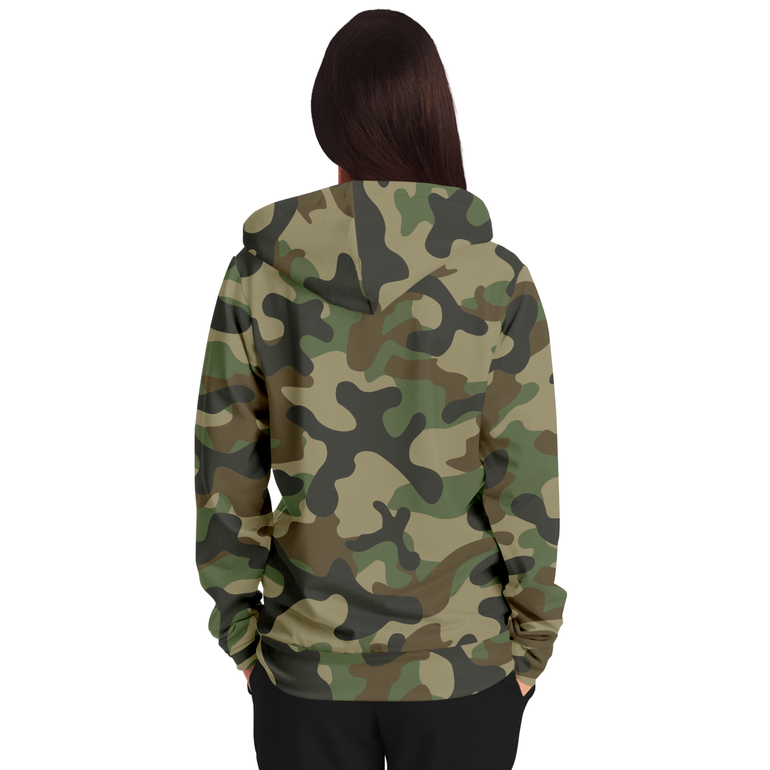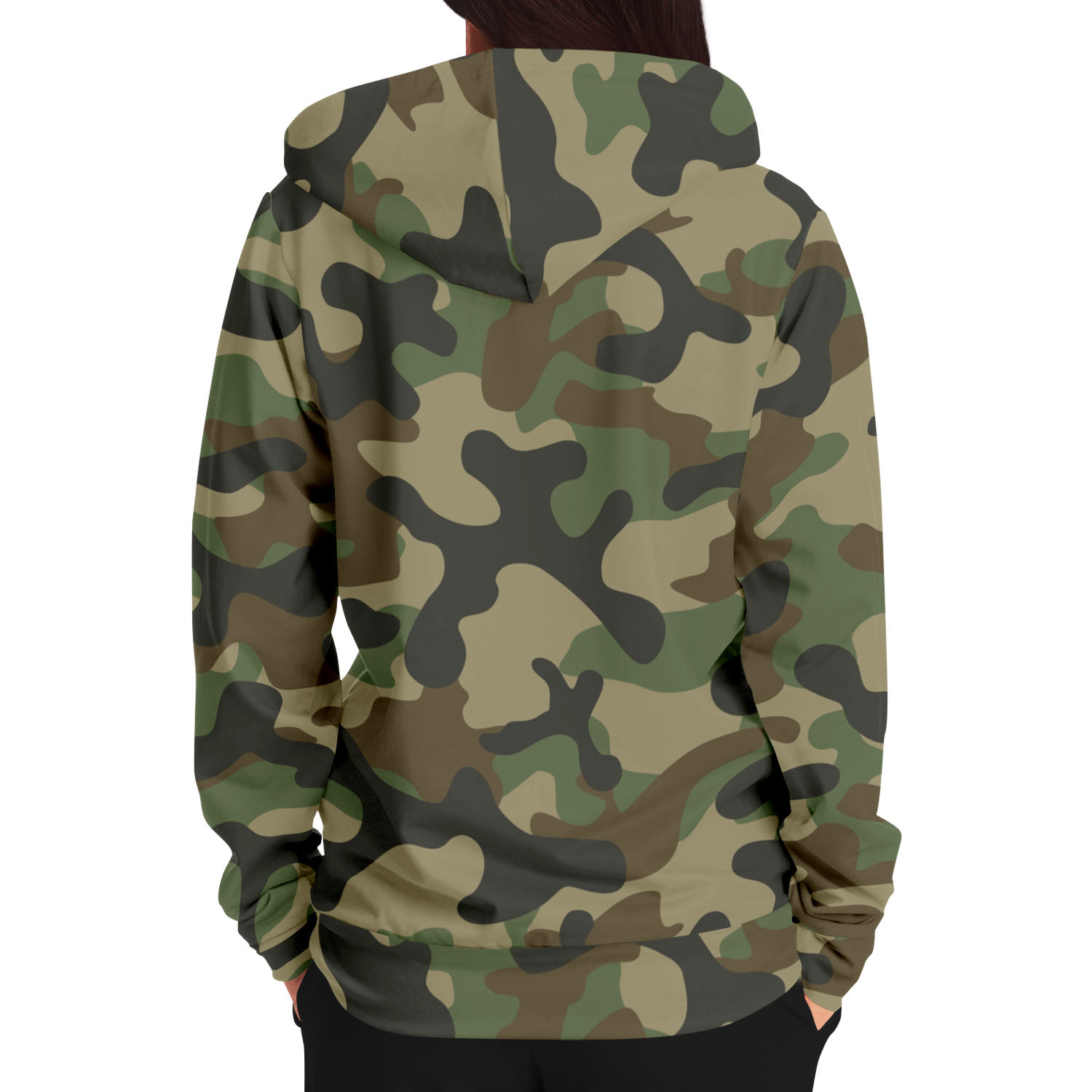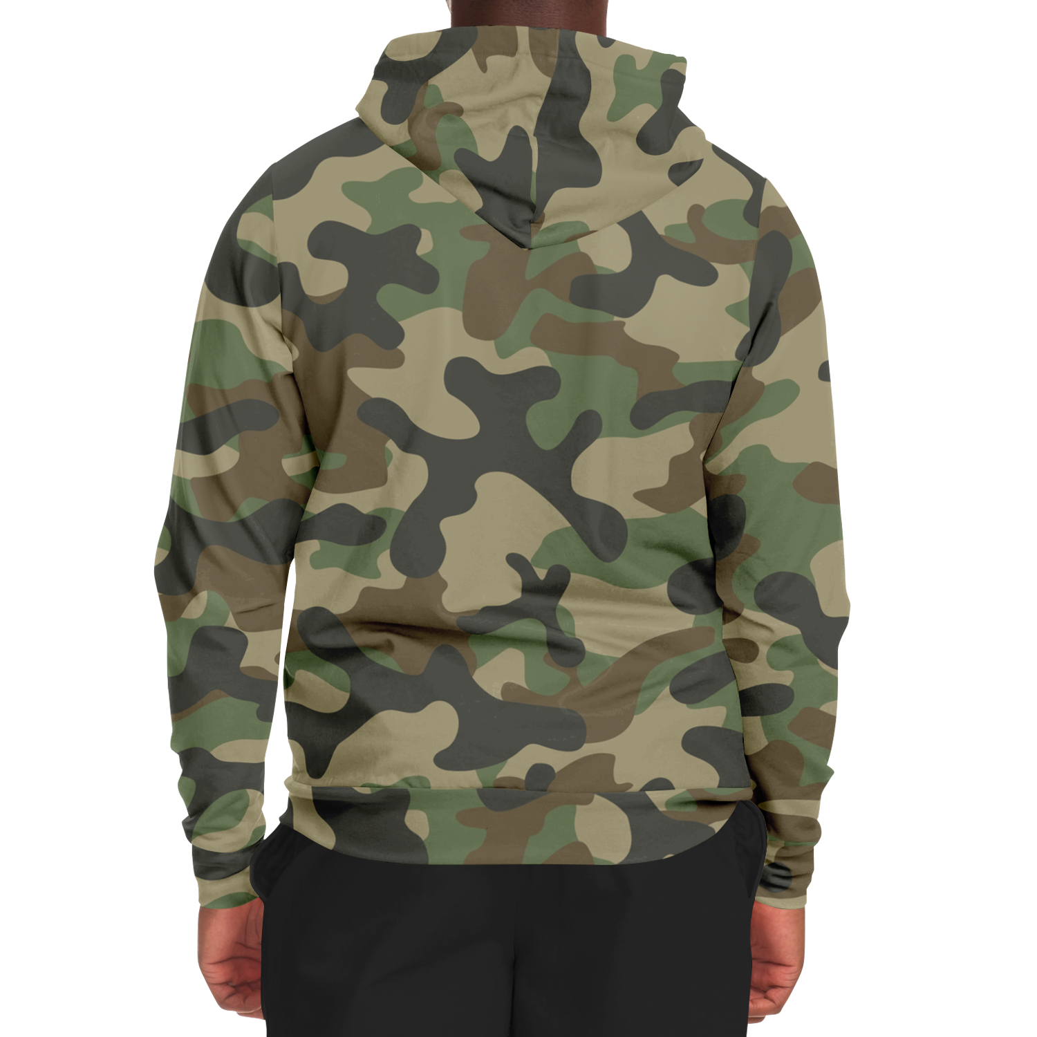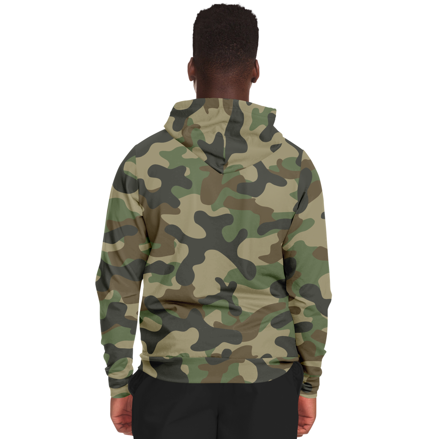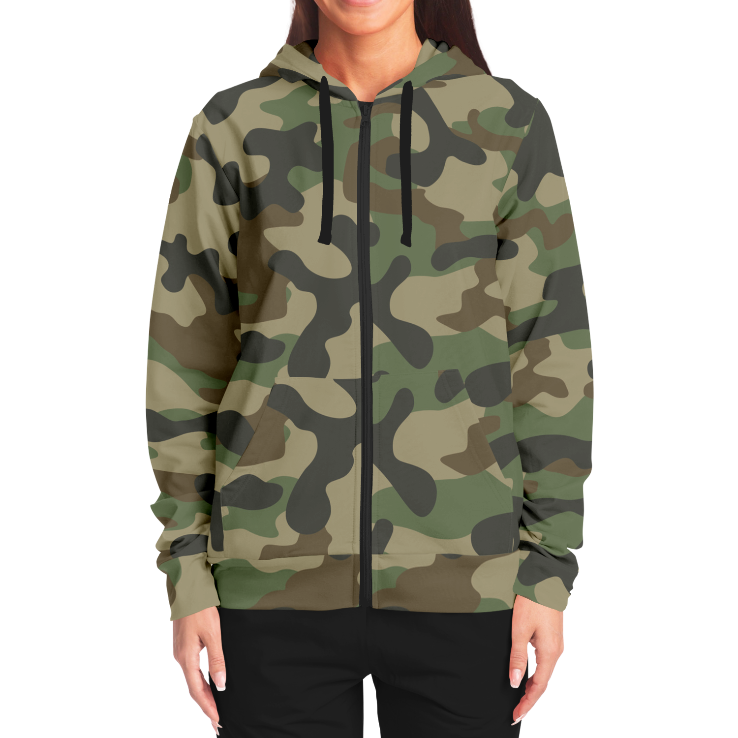 This military brown camouflage zip-up hoodie is perfect for anyone looking for both style and functionality. Made with high-quality materials, this hoodie is durable and comfortable. The camouflage design adds a unique touch and makes it perfect for outdoor activities. Stay warm and fashionable with this versatile zip-up hoodie.