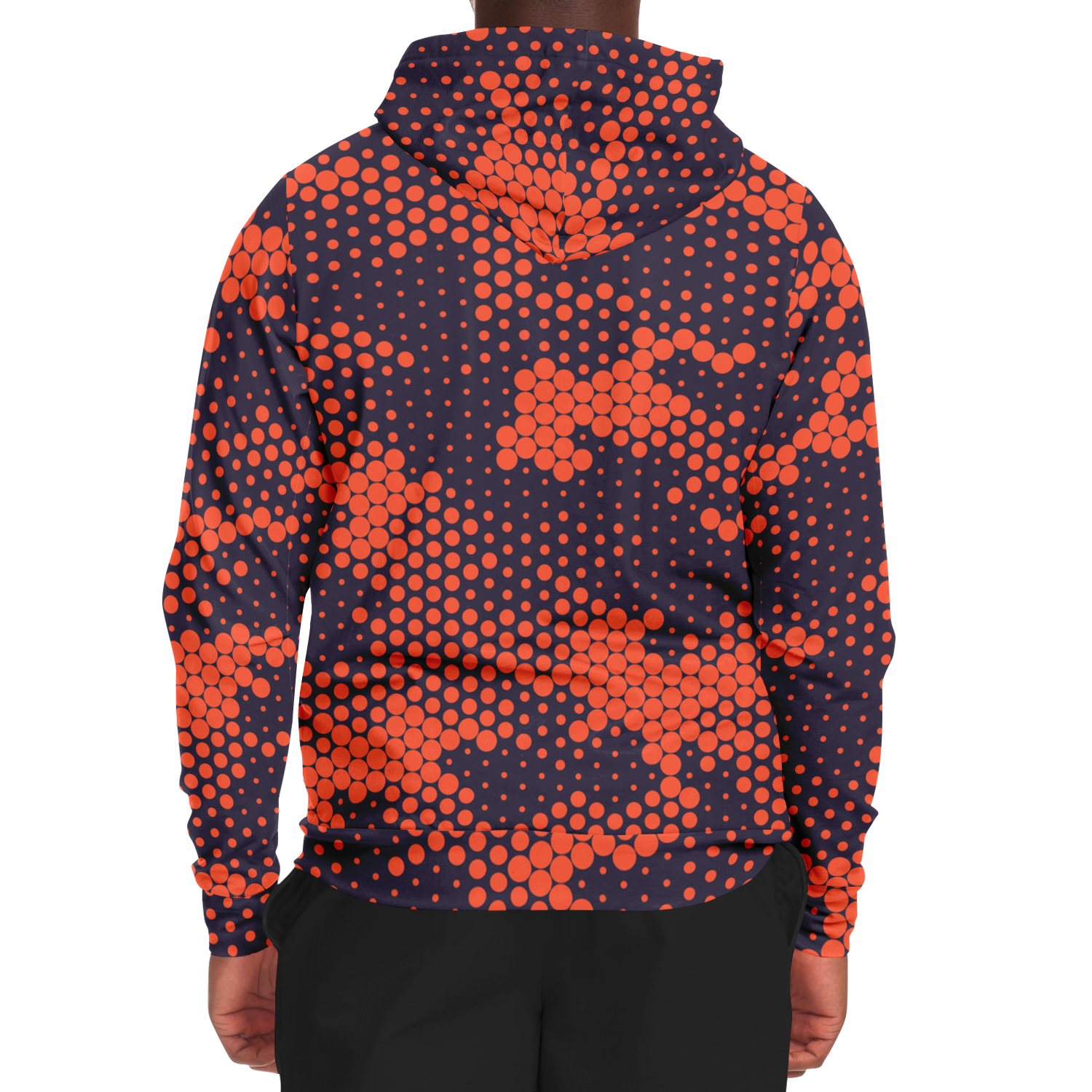 Stay concealed and warm in style with our Zip-Up Hoodie in Orange & Blue Digital Camouflage. The unique pattern blends in with any urban or natural setting, while the zip-up design offers convenience and adjustable warmth. A must-have for outdoor enthusiasts or anyone looking to add some edge to their wardrobe.