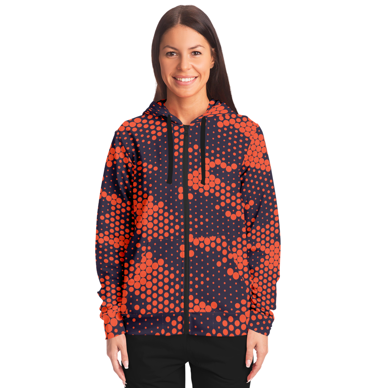 Zip-Up Hoodie | Orange & Blue Digital Camouflage style